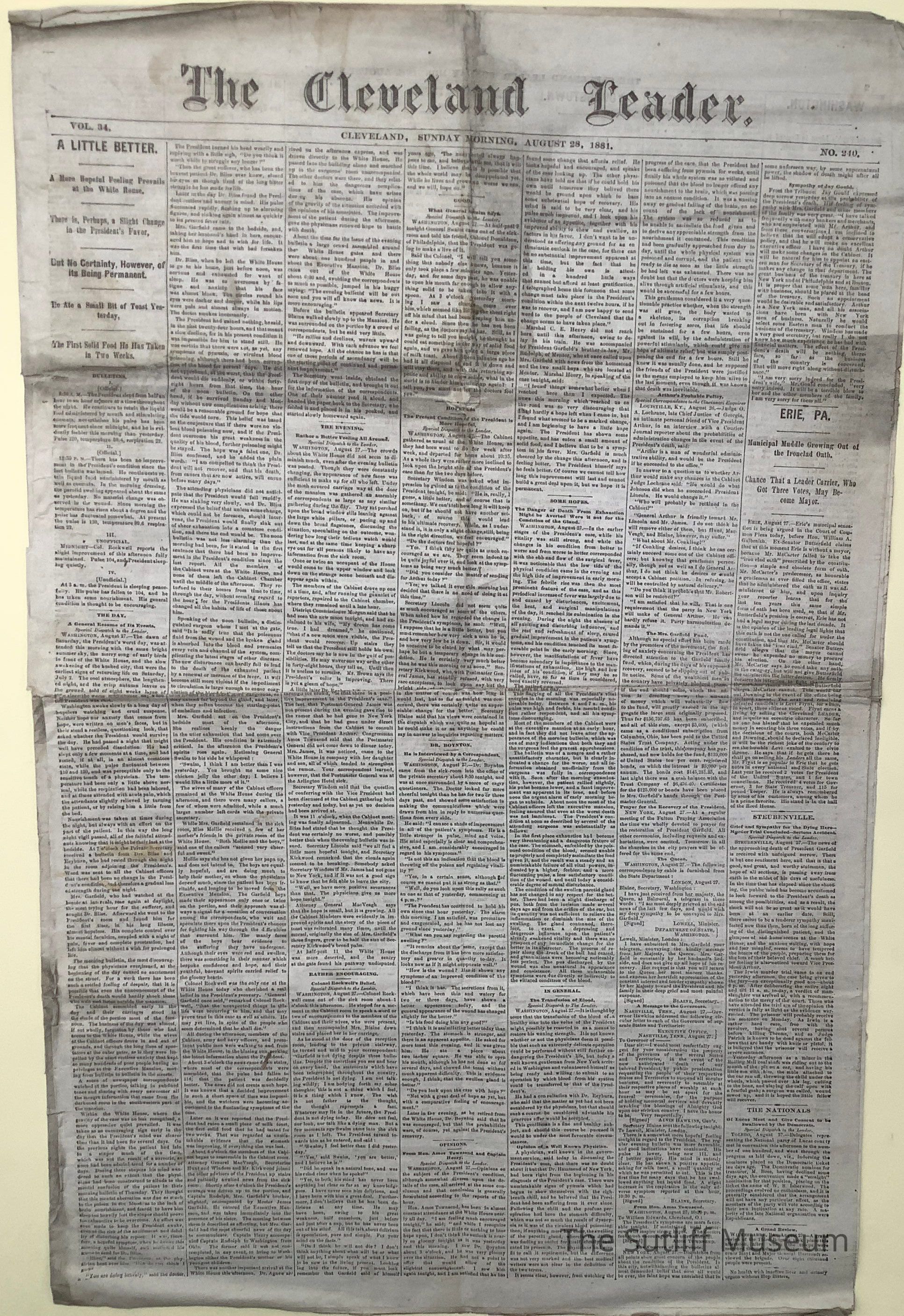 The Cleveland Leader newspaper, published August 28, 1881.Collection