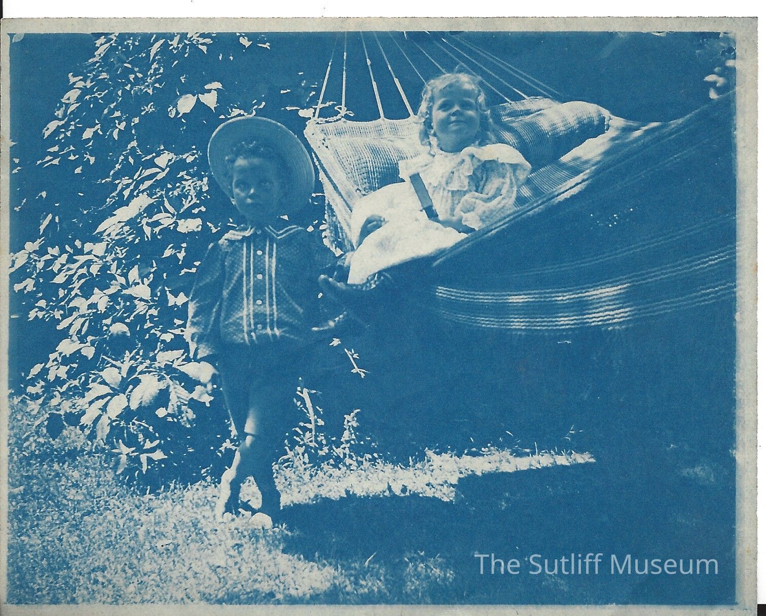 Photocopy of photograph of Urie Brinton and Helen Groves "Taken in front of our home". Copy is printed blue.Collection