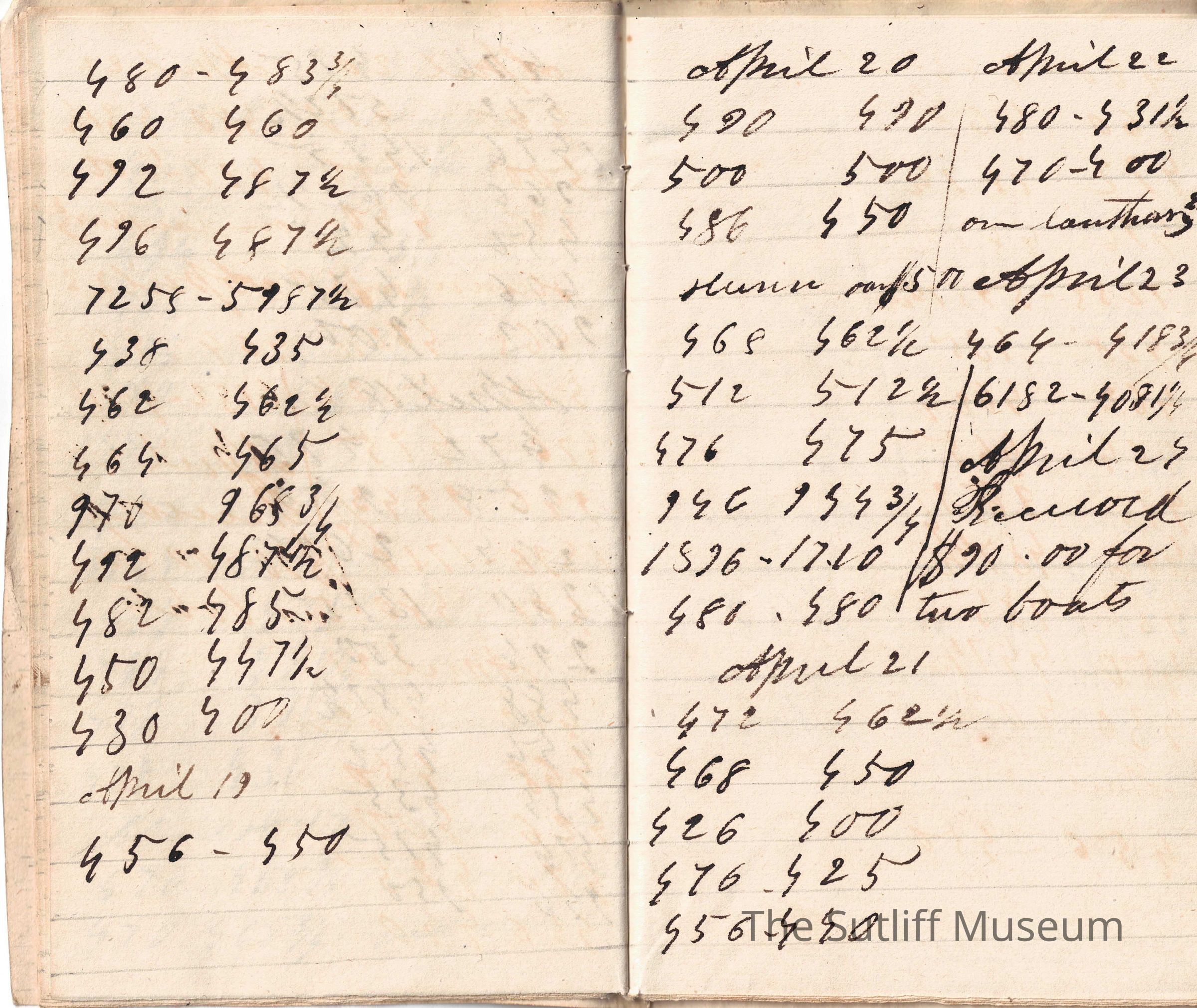 Levi Sutliff Wage Journal 1835Entry/Object ID