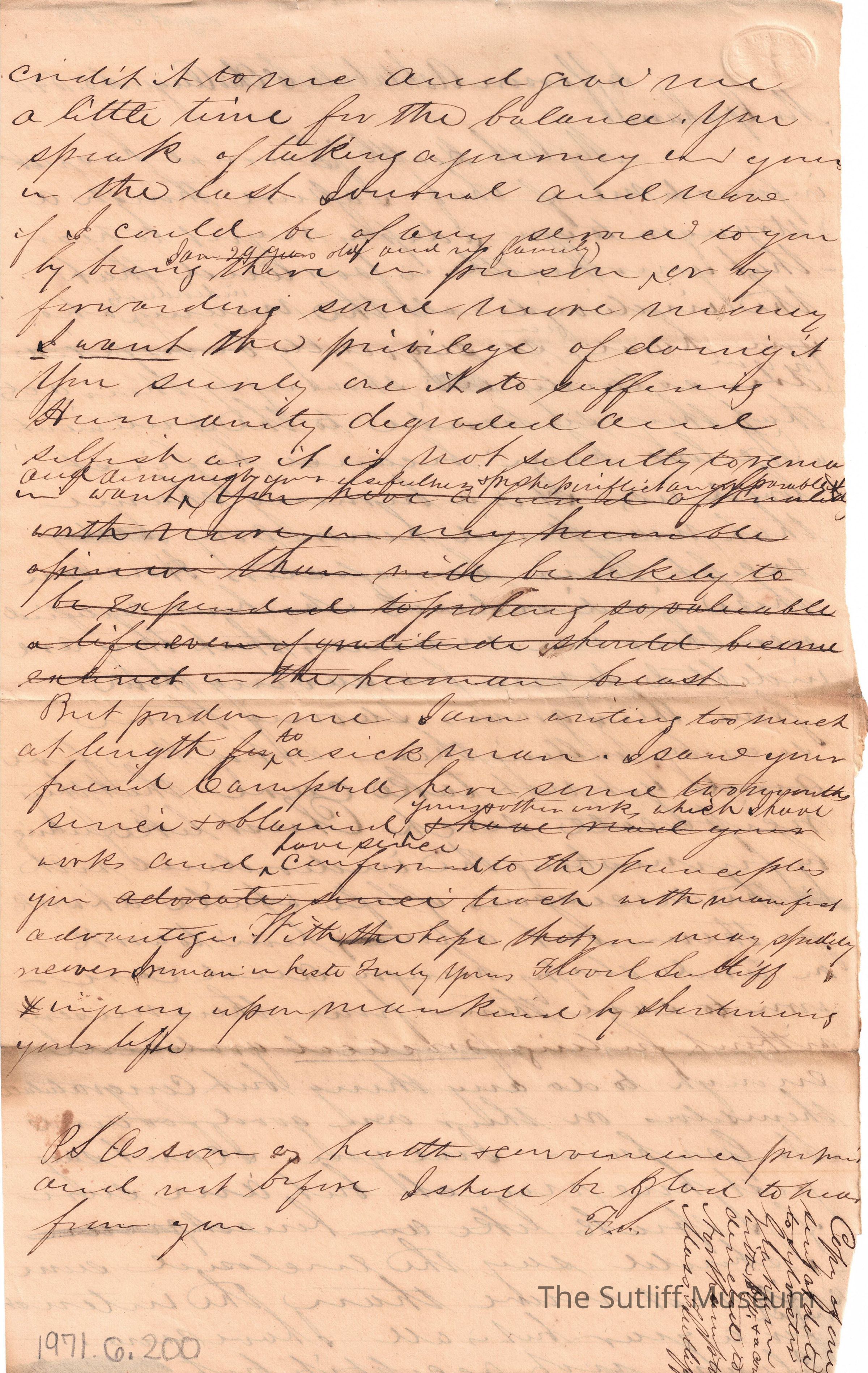 Letter from Flavel Sutliff to Mr. Graham regarding condolences for his poor health and asking for advice.