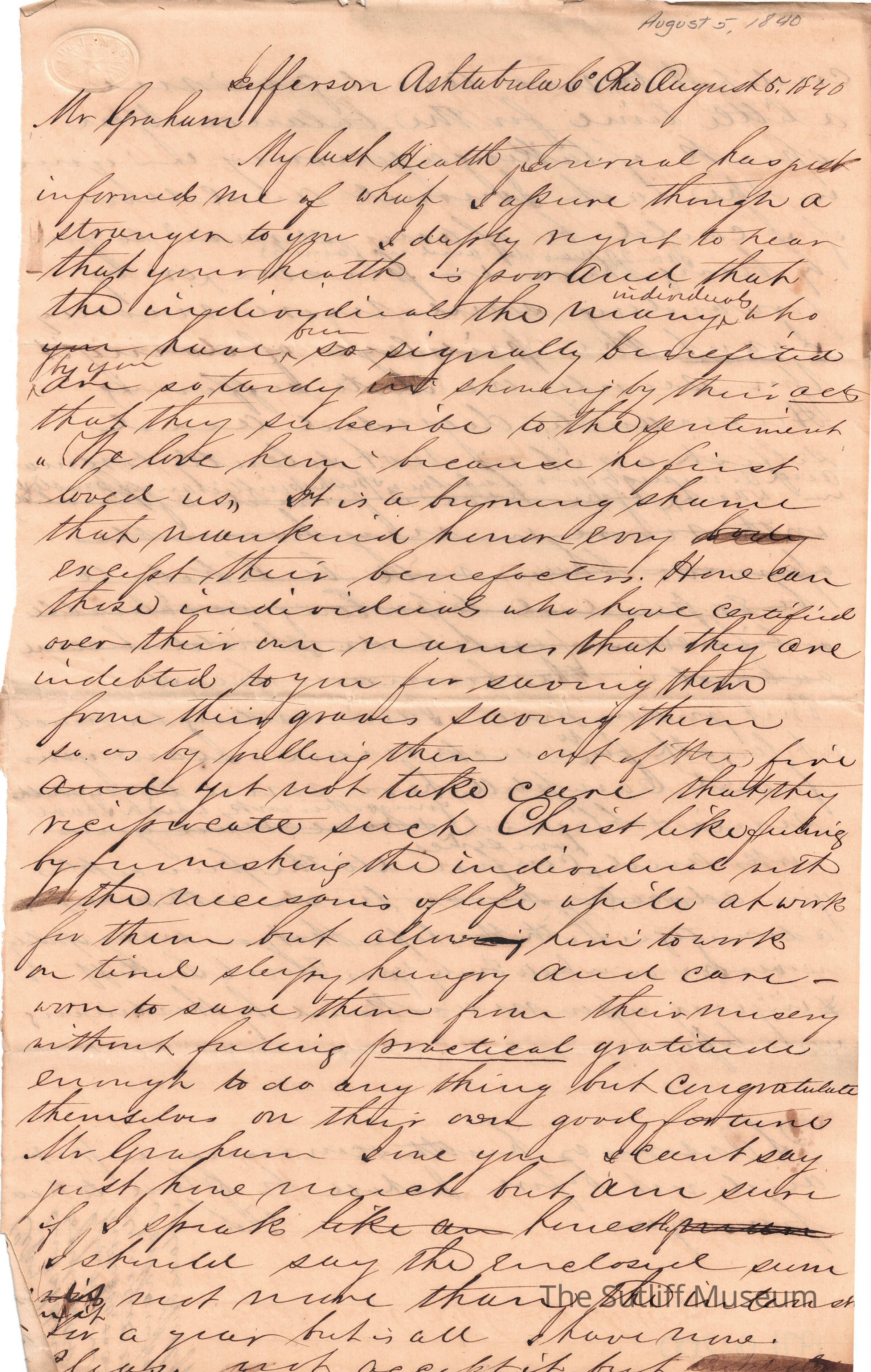Flavel Sutliff to Mr. Graham