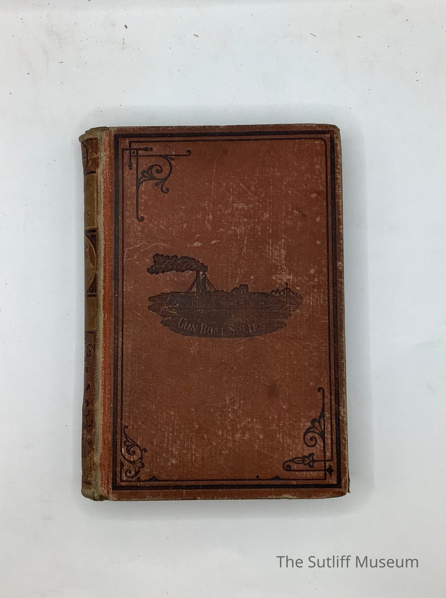 6 7/8 inchs high X 4.5 inches wide. Red cloth hardbound copy with black embossed border and image of steamship on front cover along with the text "Gun Boat Series." 256 pages.Collection