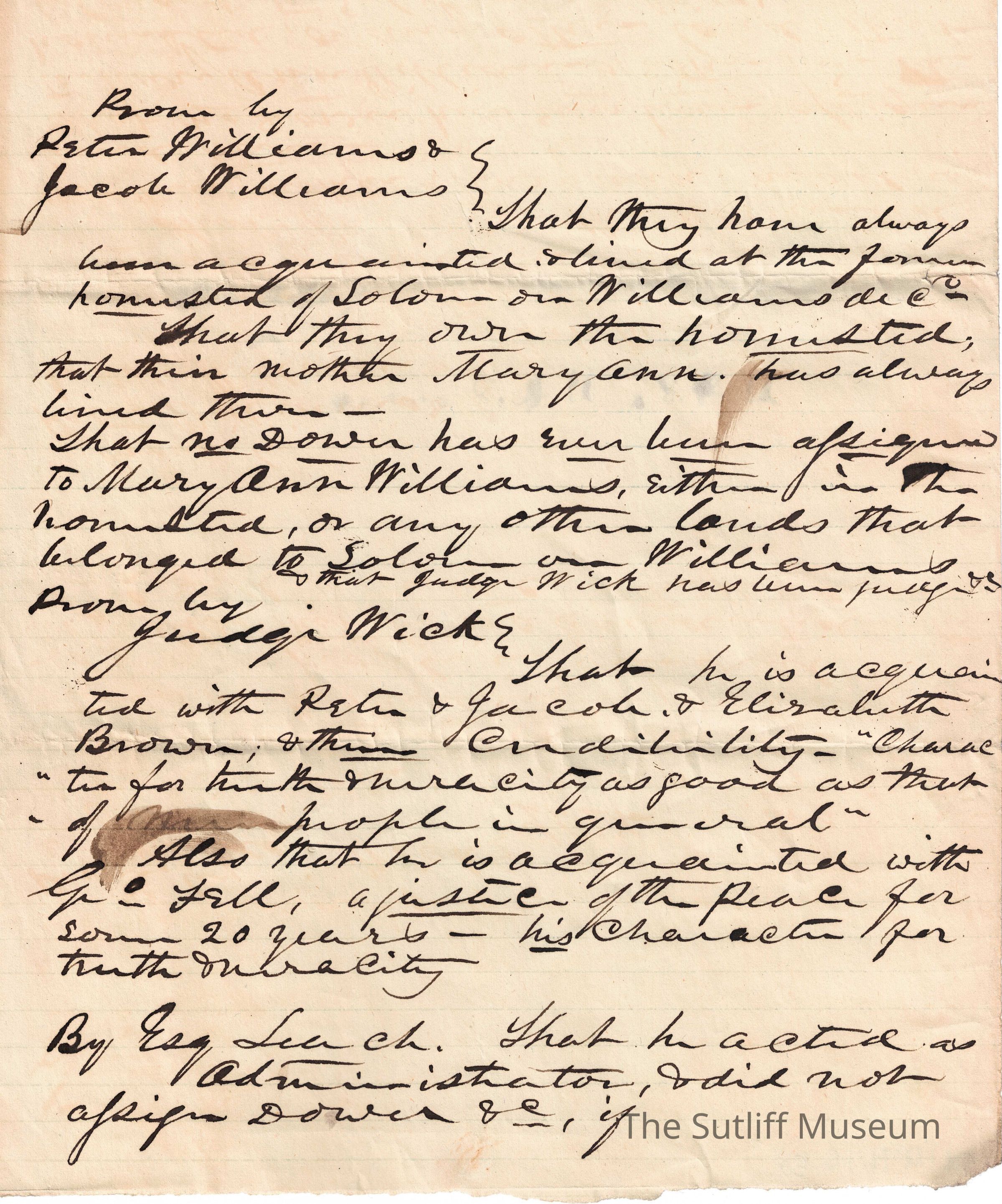 A letter from Peter and Jacob Williams regarding their land.Relationships