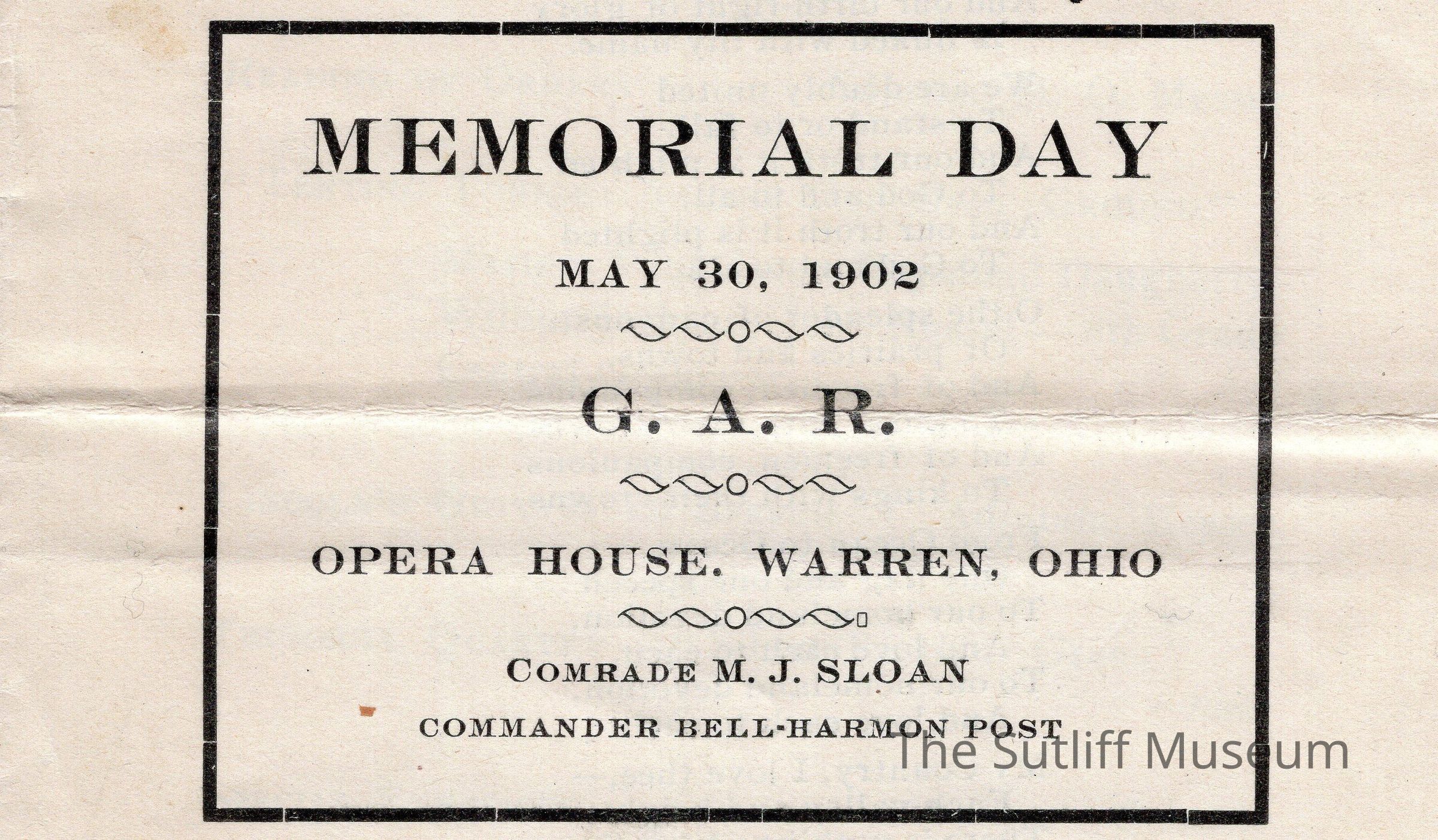 A program for the G.A.R's Memorial Day celebration at the Warren, Ohio Opera House on May 30, 1902.Archive Details