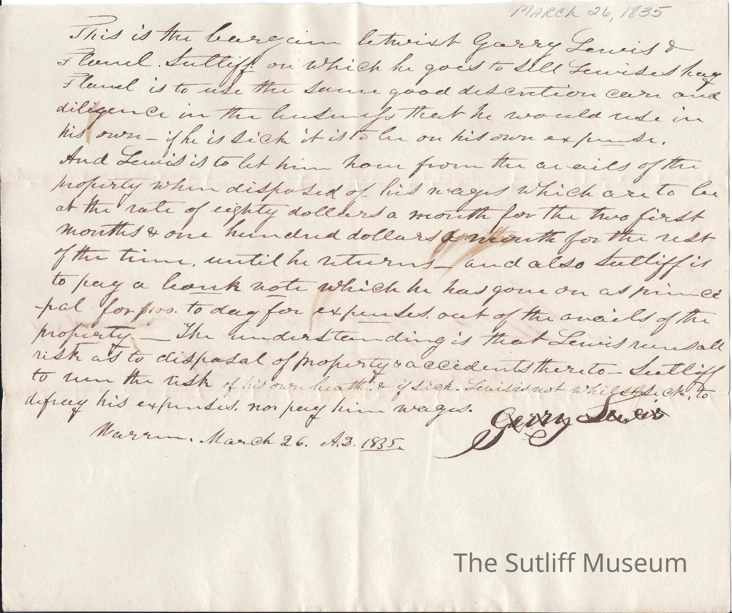 Contract Between Garry Lewis and Flavel Sutliff calling on Flavel Sutliff to sell hay on behalf of Garry Lewis. Most likely sent with 1971.6.23 and 1971.6.22.