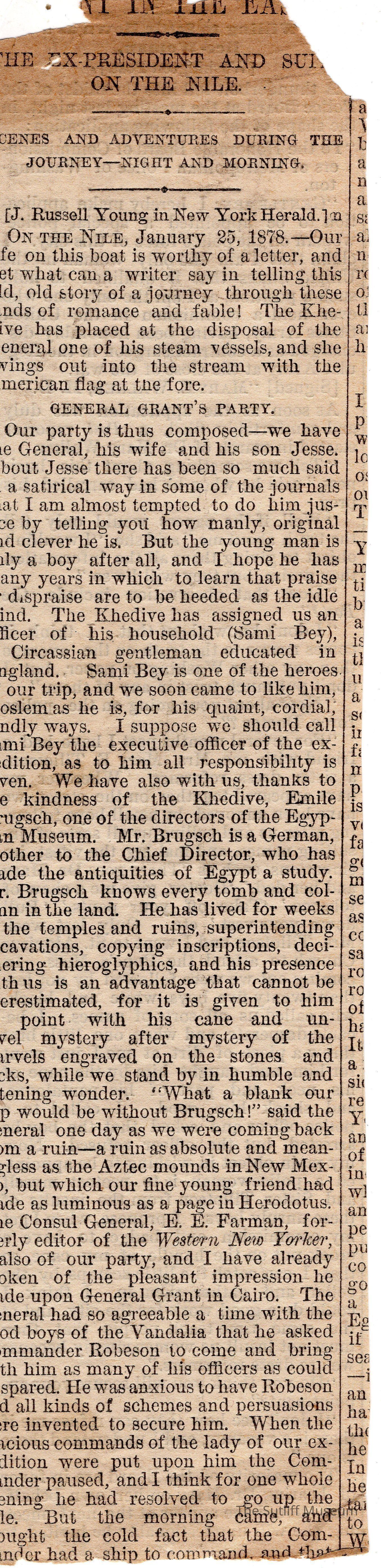 Newspaper clipping with an article about General Grant's Party, undated.Collection