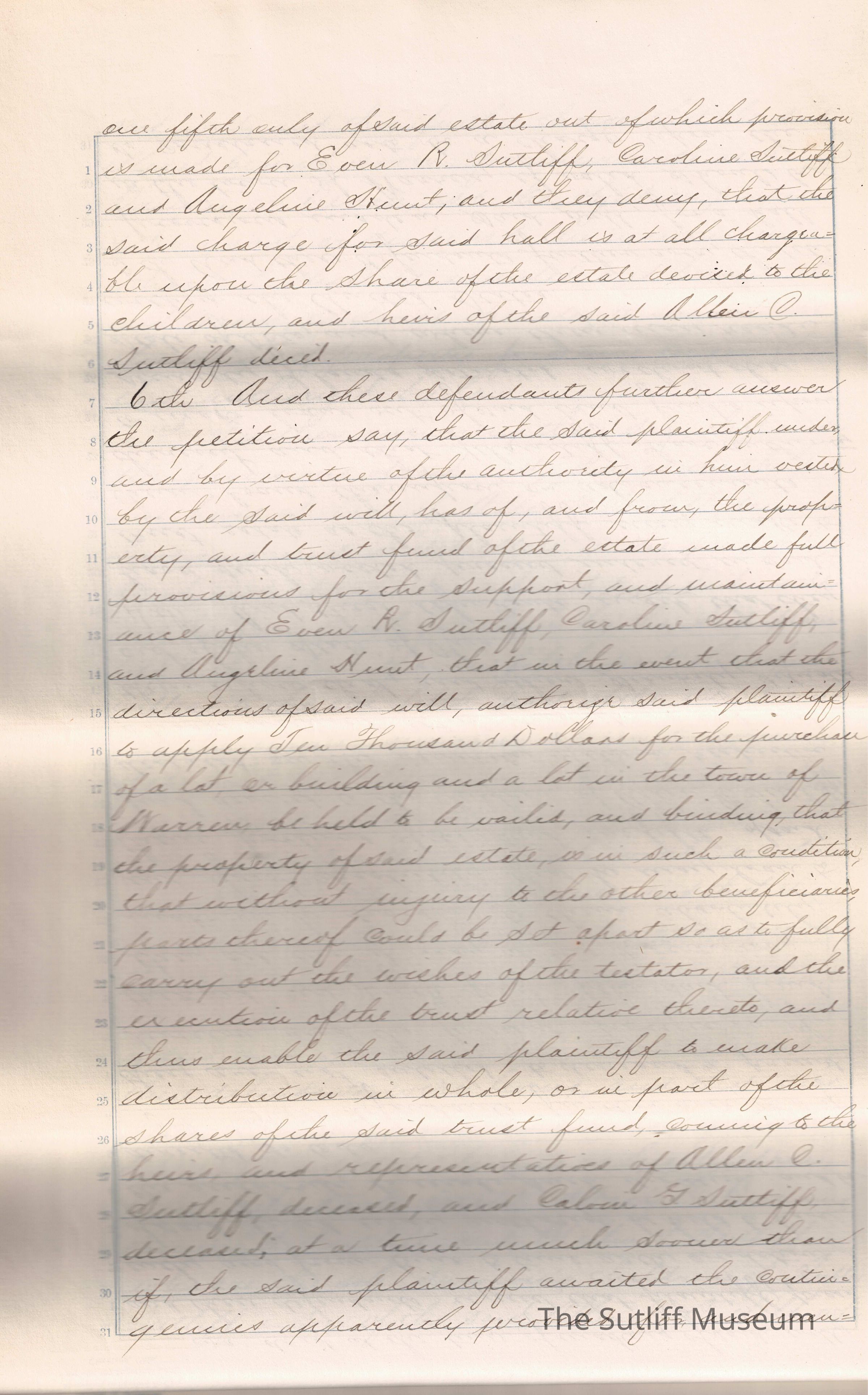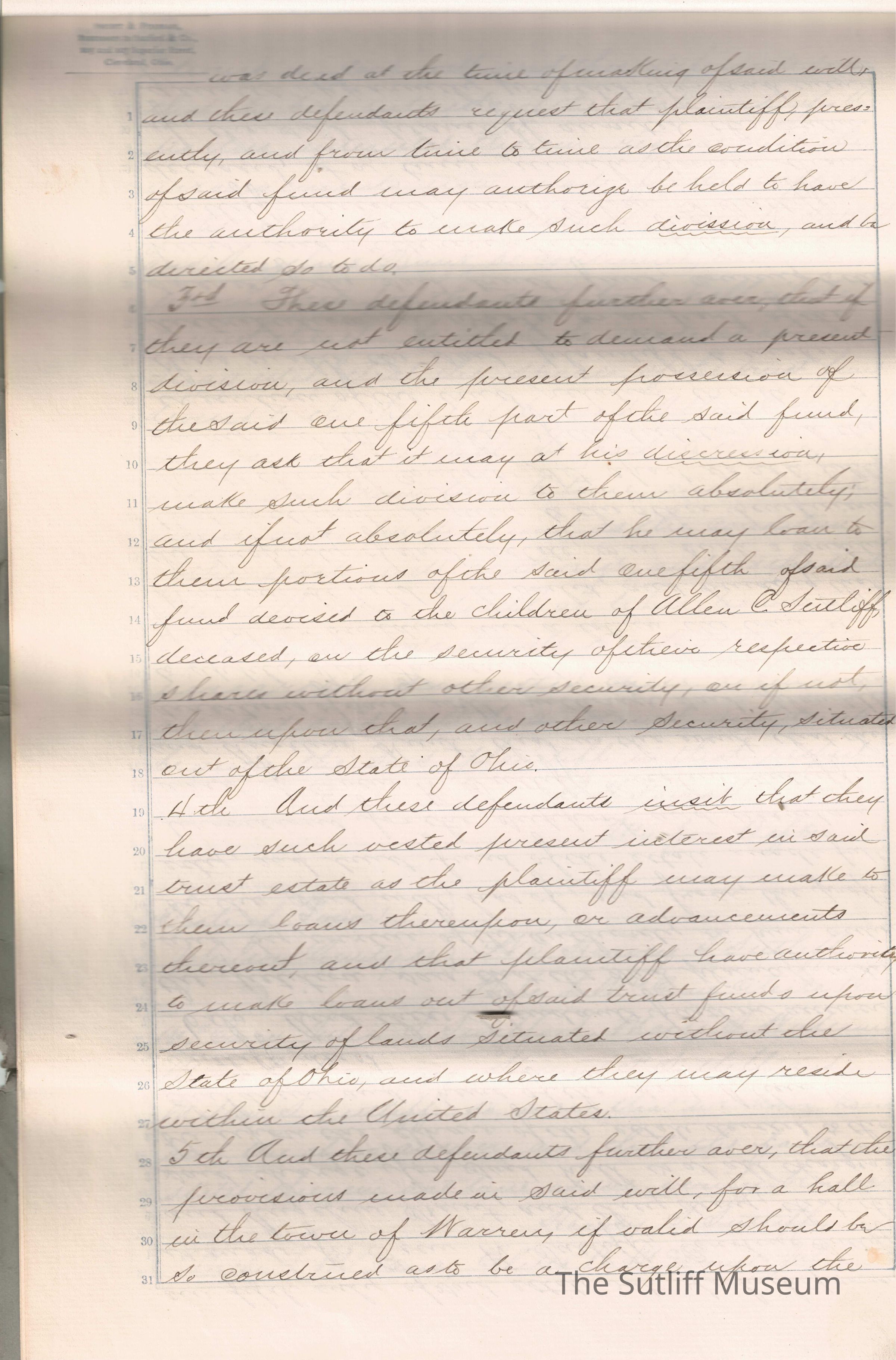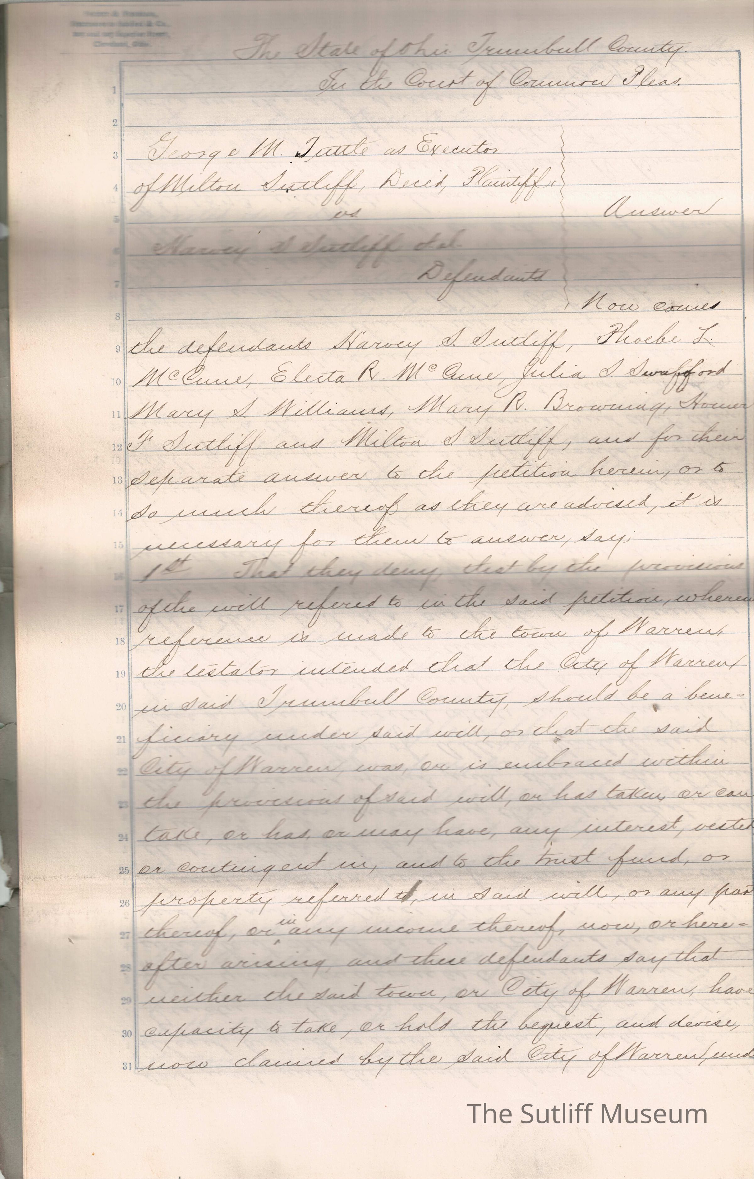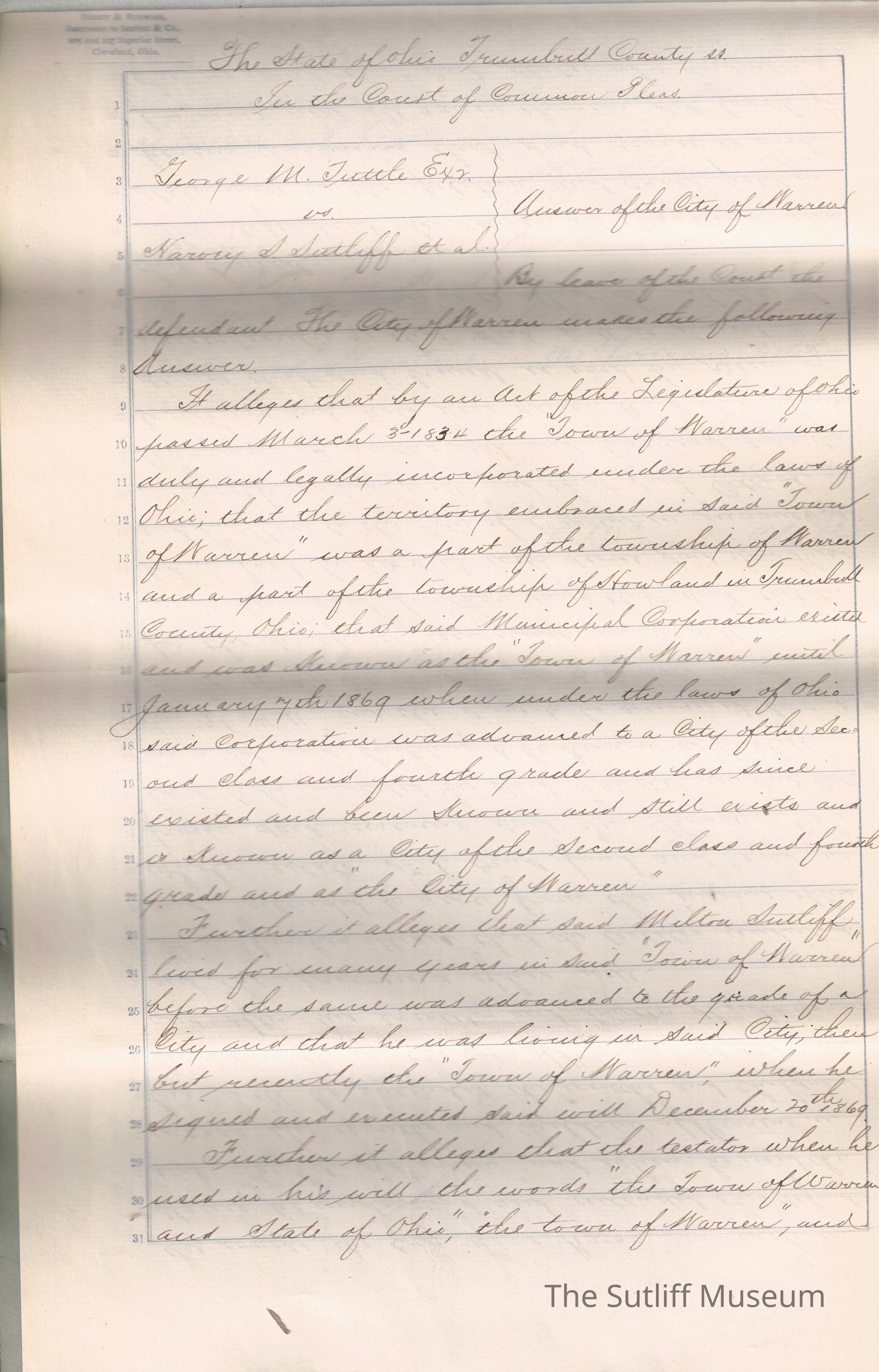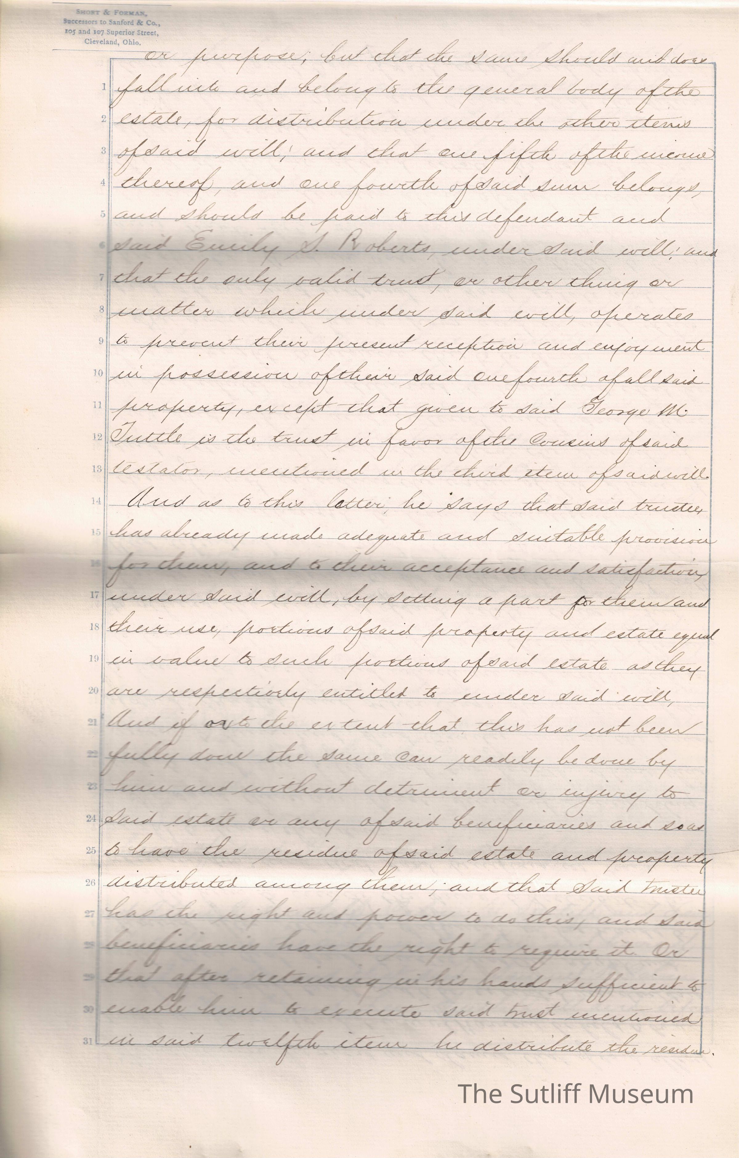 A copy of the legal case of George M. Tuttle vs Harvey Samuel Sutliff et al regarding a contestation of Milton Sutliff's will. Included is three different records.Collection