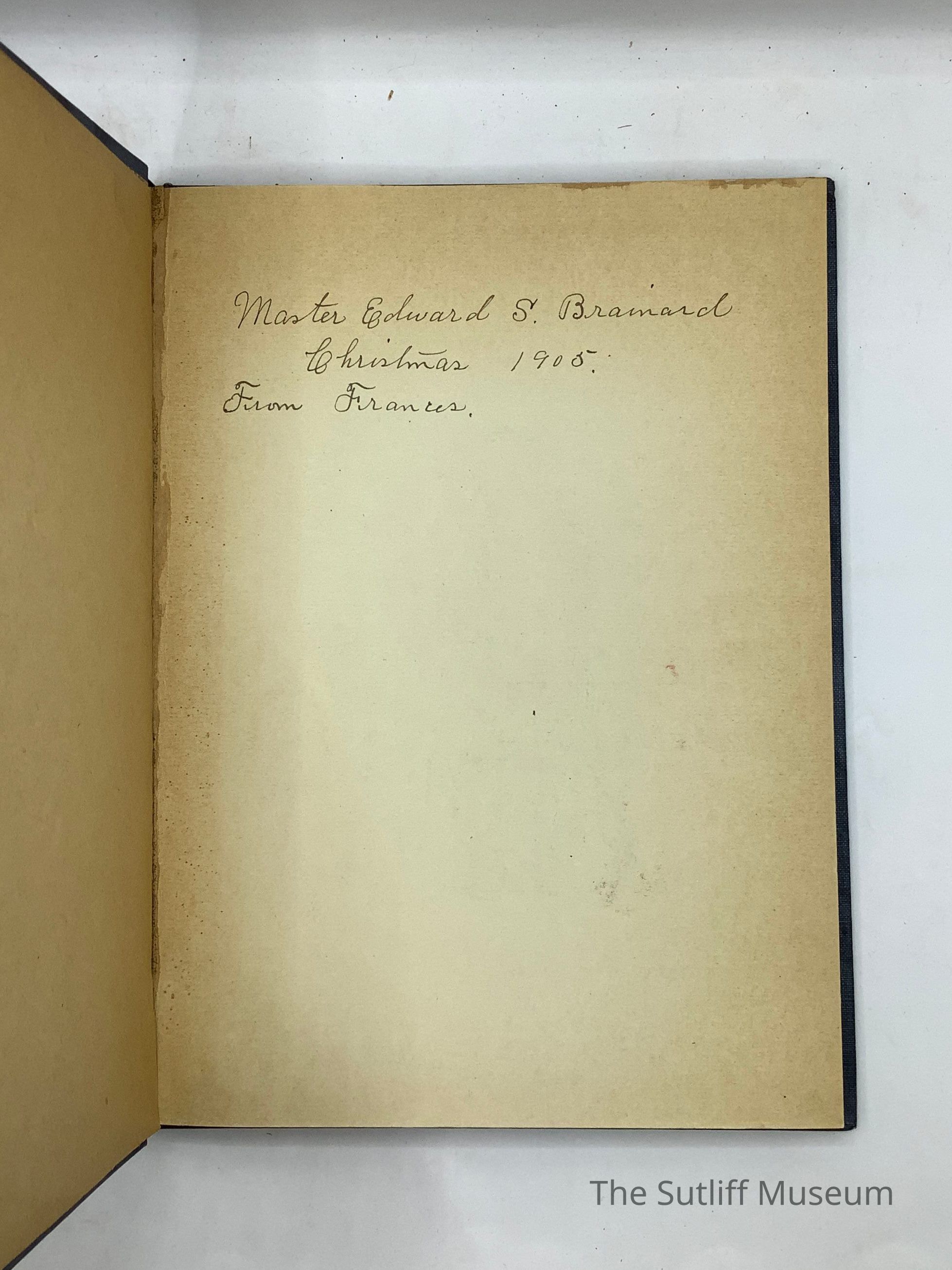 Blue cloth hardcover with white embossed title and author's name. Front cover bears image of Colonial era soldiers in black and red. 144 pages with illustrations. Handwritten inscription on frontspiece reads "Master Edward S. Brainard Christmas 1905, From Francis."