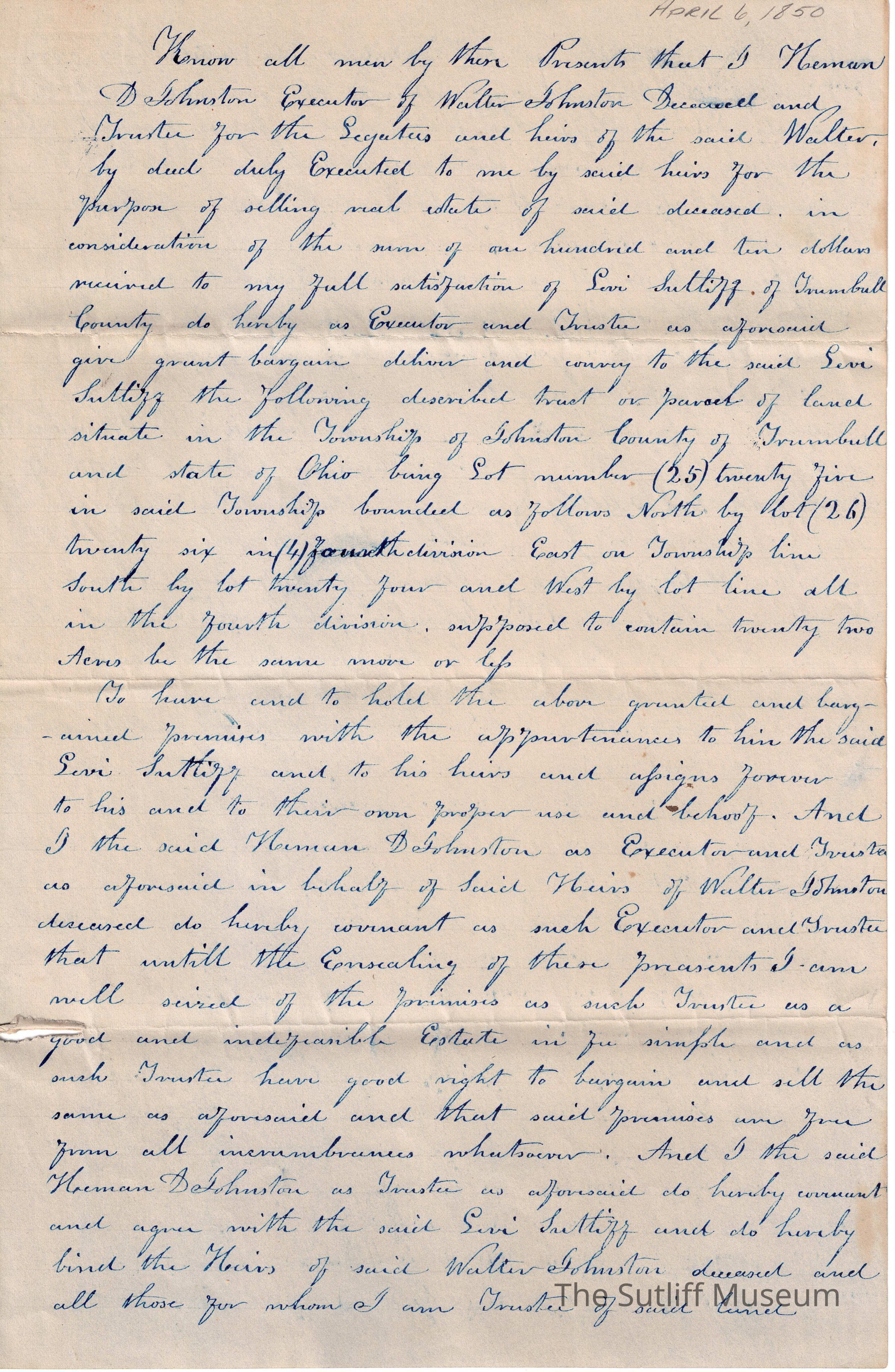 A transfer of land from Herman D. Johnston to Walter Johnston.Relationships