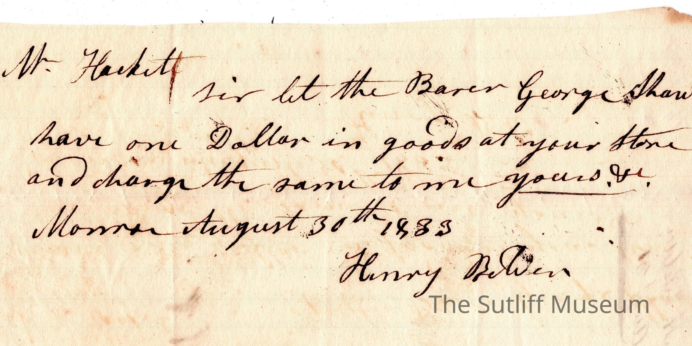 A note from Henry Bolder to Mr, Hackett regarding a payment.Relationships