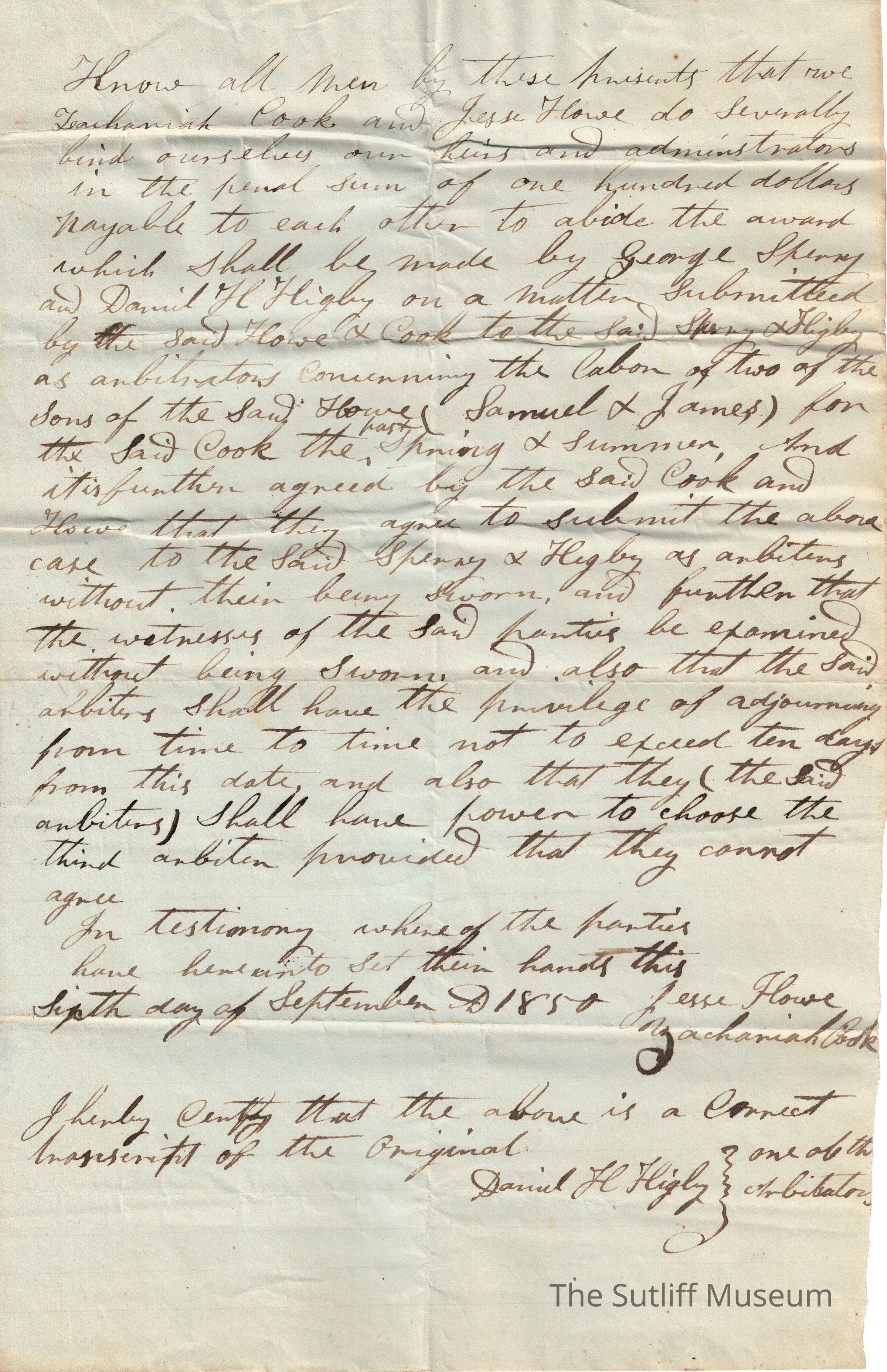 A testimony from Jesse Howe certified by Daniel H. Higly.Relationships