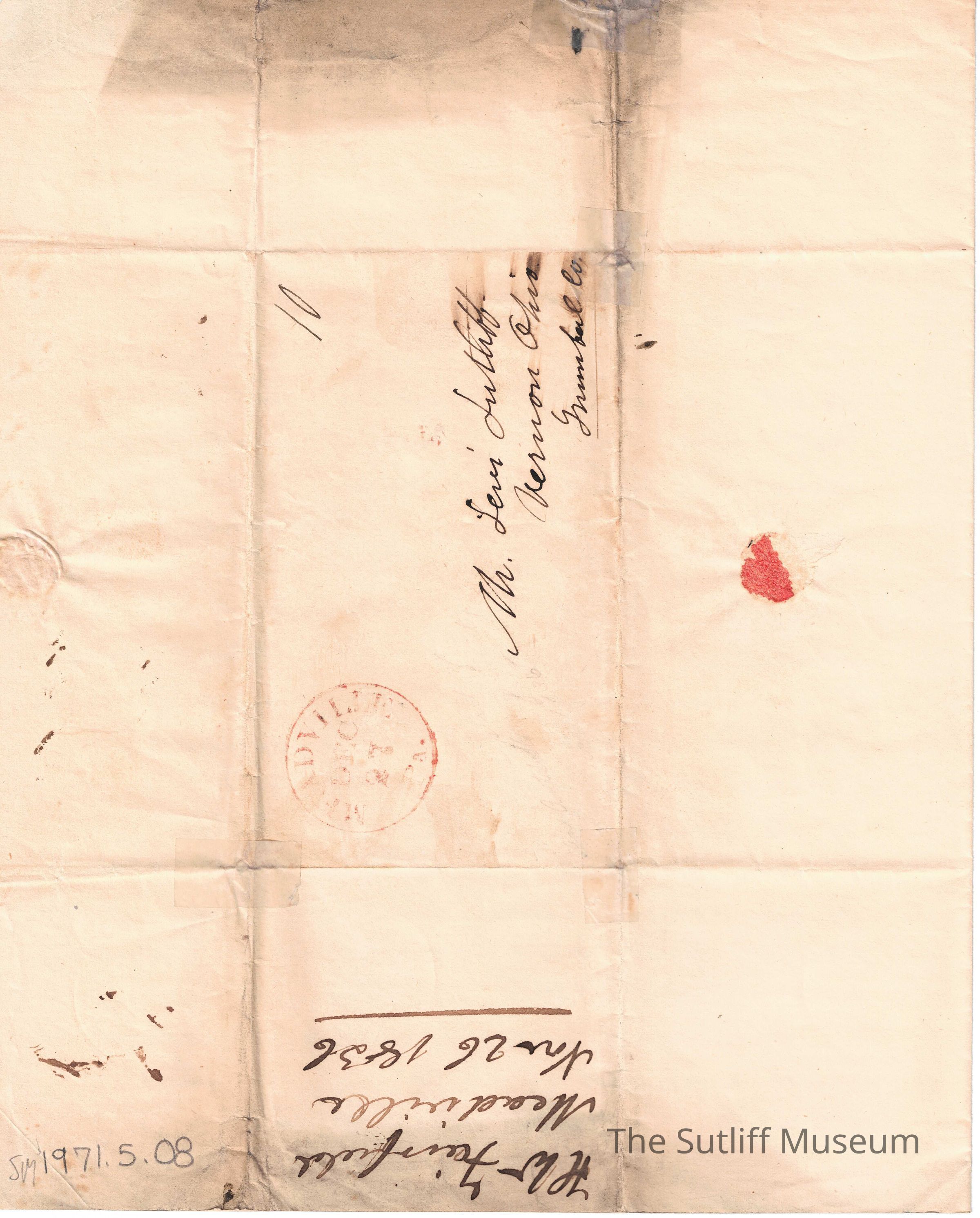 A letter from H.W Fairfield to Levi Sutliff regarding the creation of an Anti-Slavery Society and the desire for Sutliff to attend the meeting.Collection