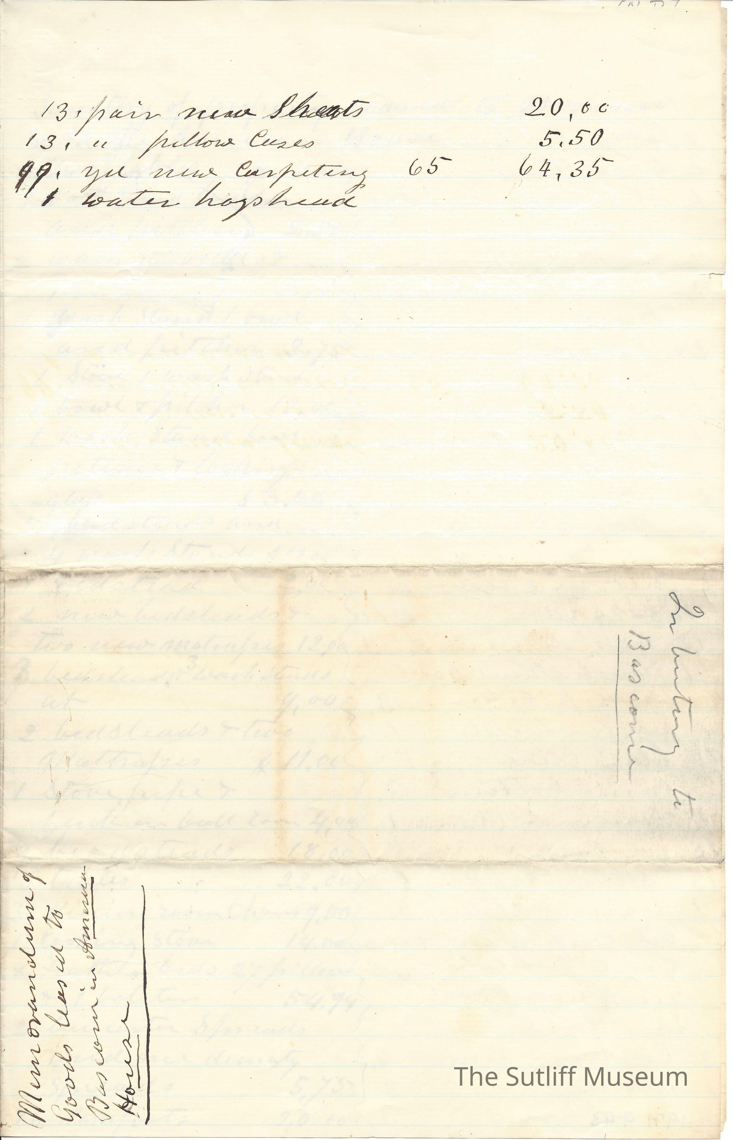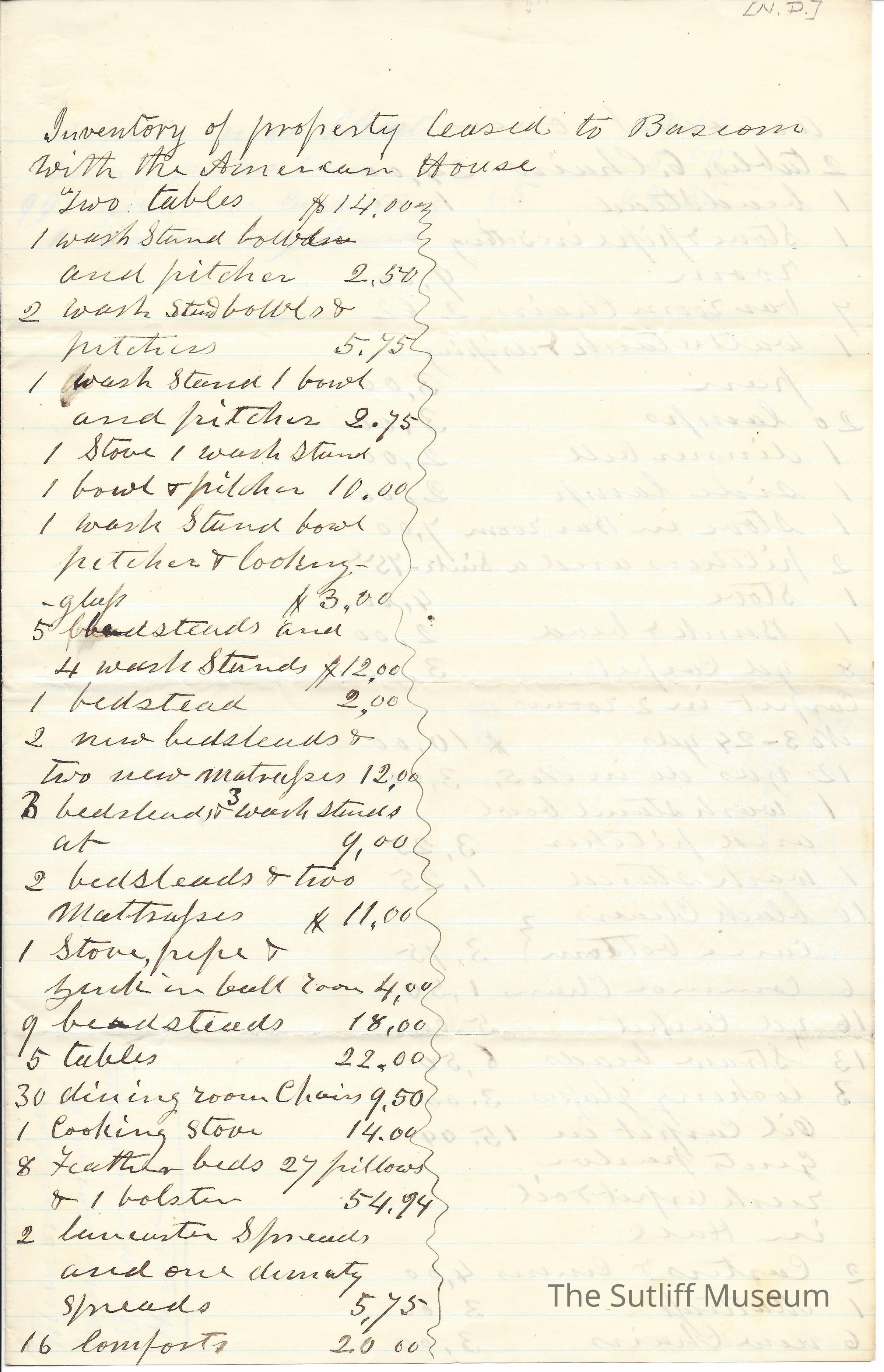 An inventory of the American House, leased from Levi Sutliff to Bascom.