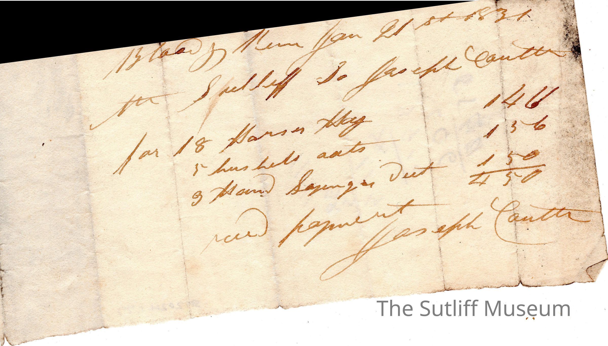A note from Joseph Cautta to Levi Sutliff regarding a payment.Relationships