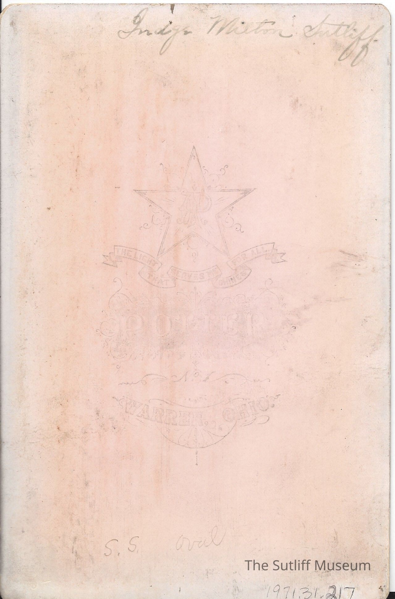 Cabinet card of Milton Sutliff, labeled Judge Milton Sutliff. Undated.Collection