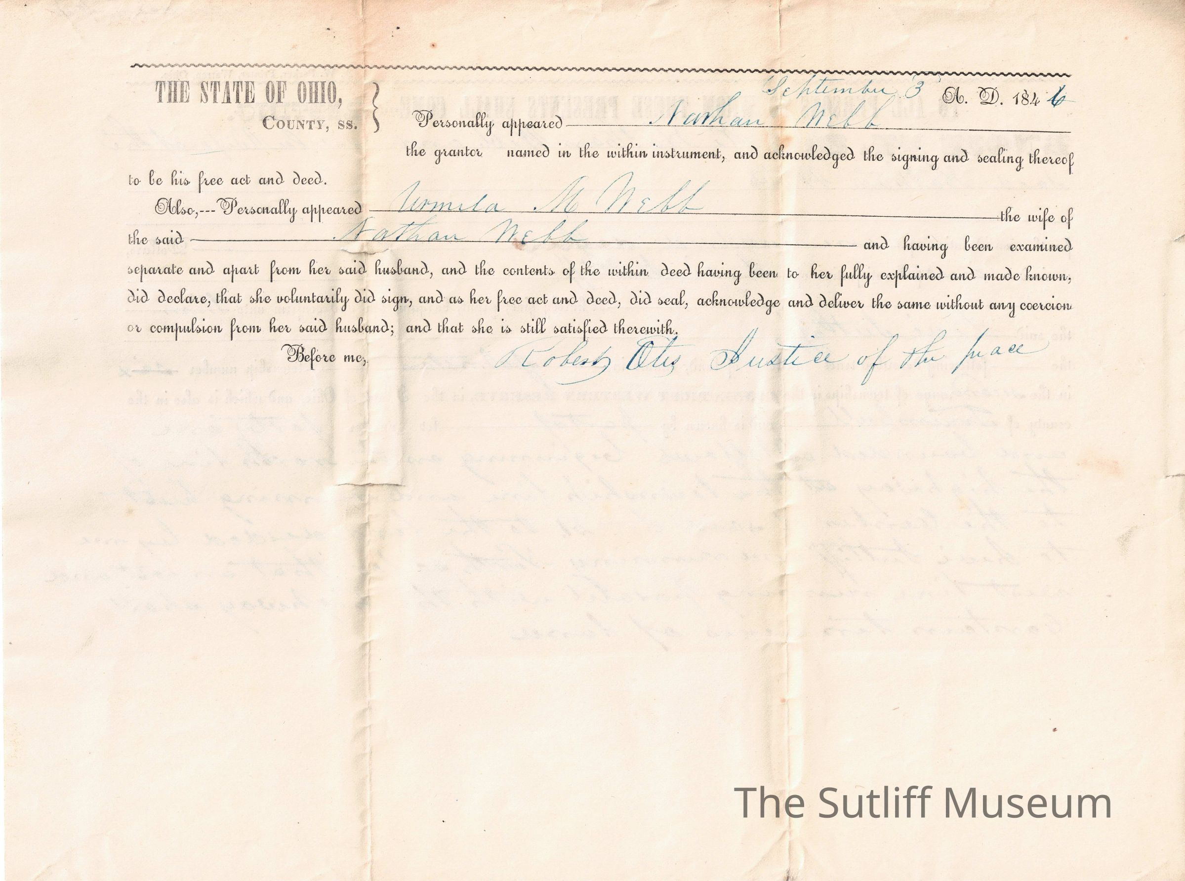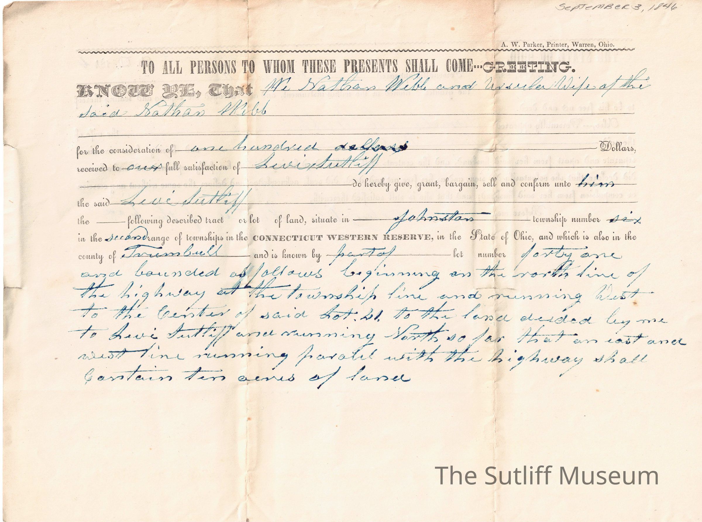 A land transfer from Levi Sutliff to Nathan Webb and his family.Relationships