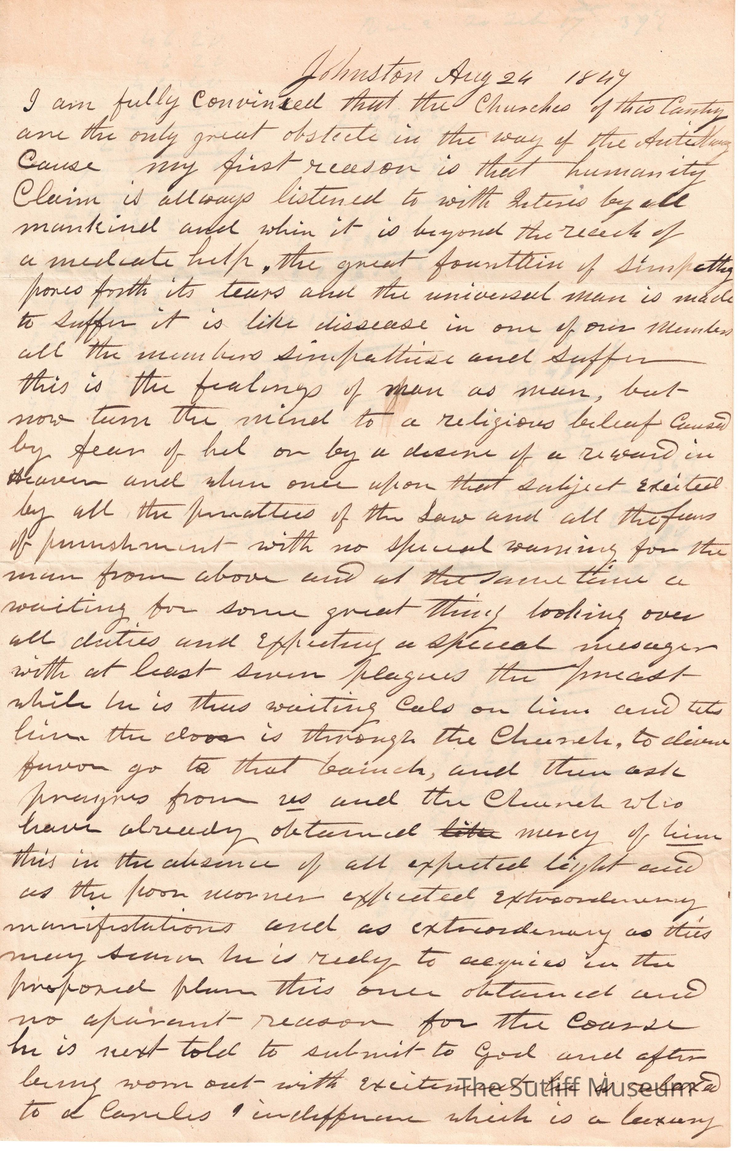 A letter from ? to ? regarding the Churches of America being an obstacle for the Anti-Slavery Movement.Collection