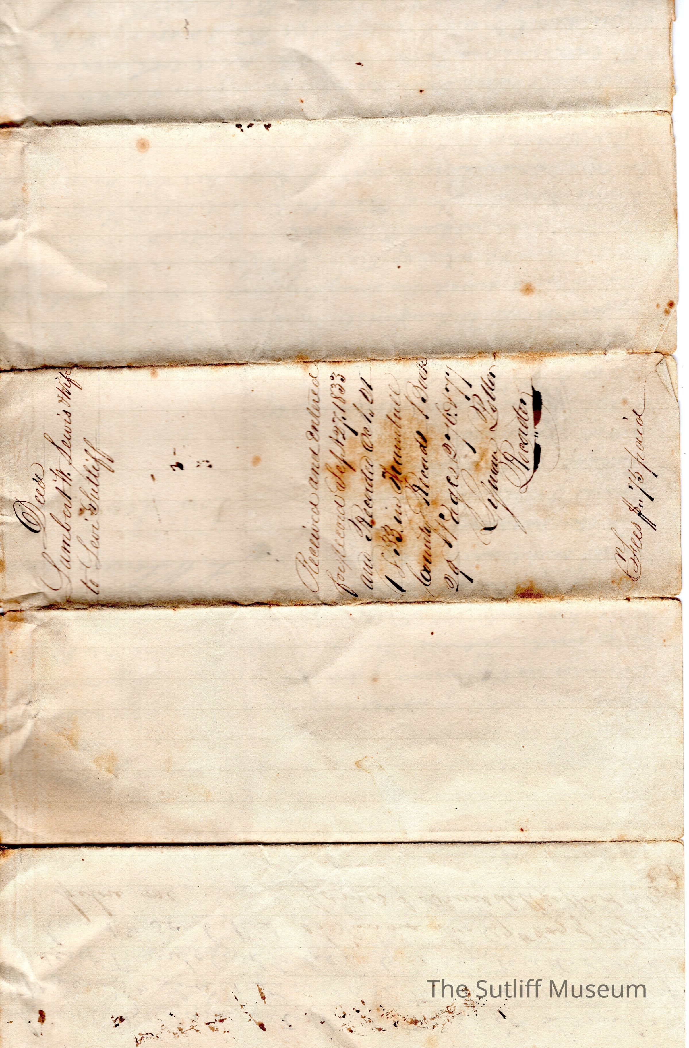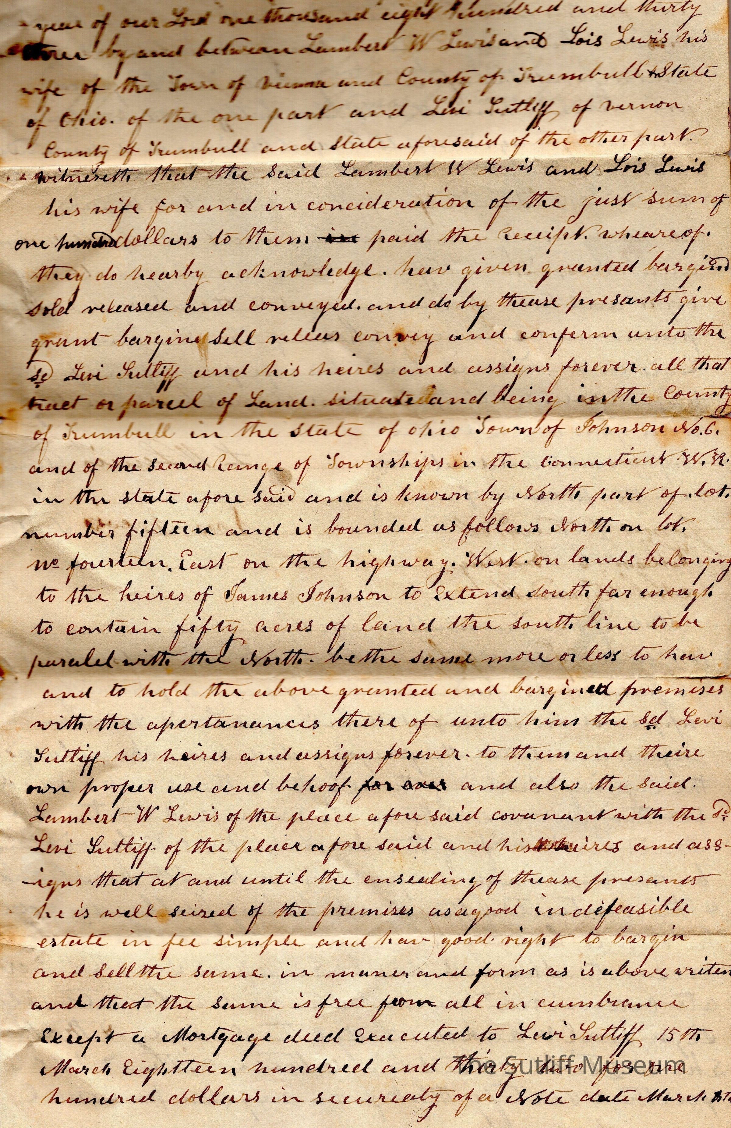 A letter from Lambert Lewis and his wife, Lois Lewis to Levi Sutliff.