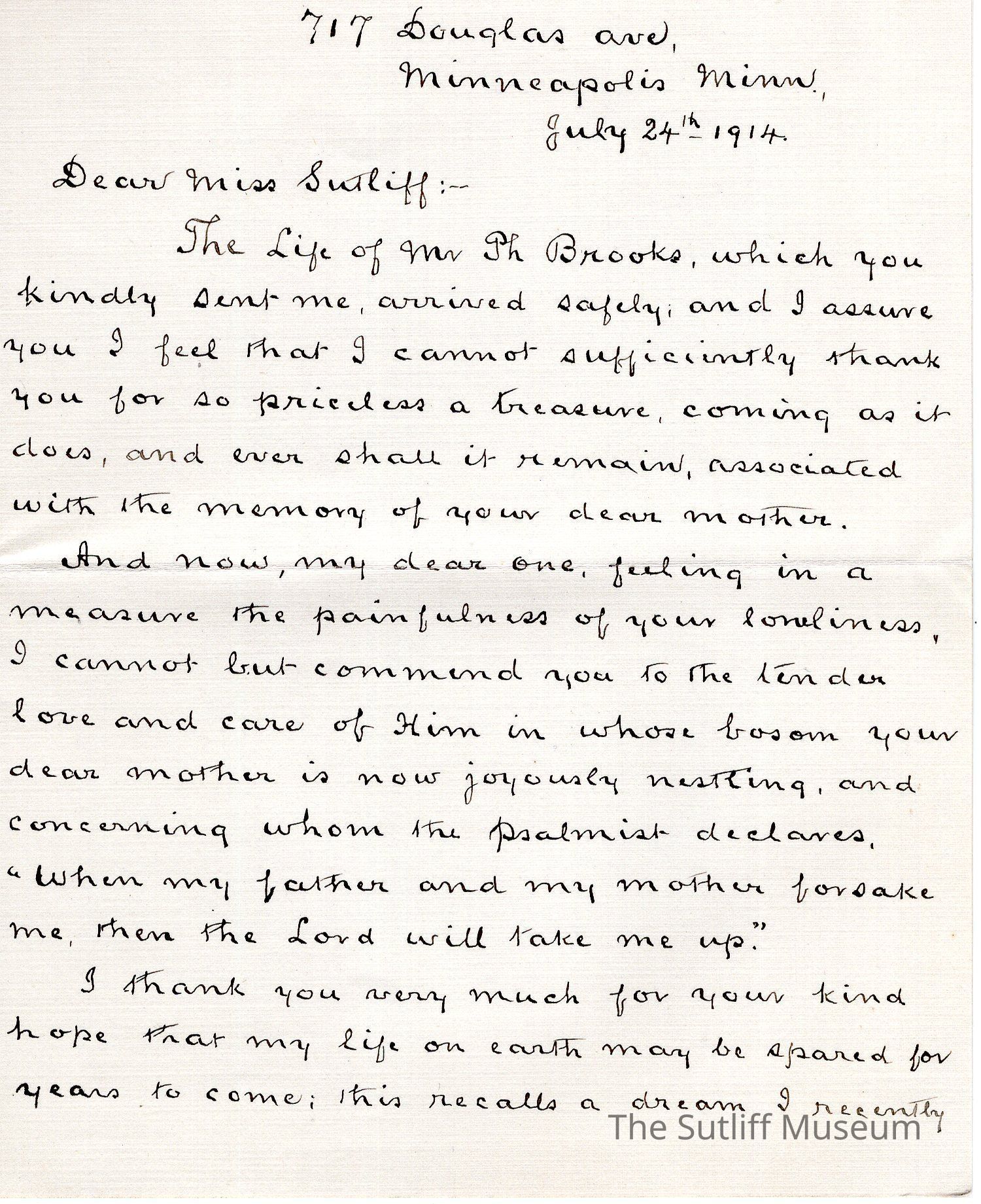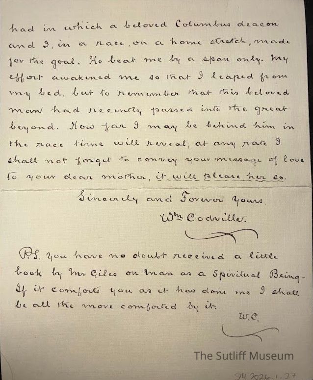 A letter from Reverend W. Codville to Phebe Temperance Sutliff thanking her for giving him a biography on The Life of Mr. Ph Brooks.Archive Details
