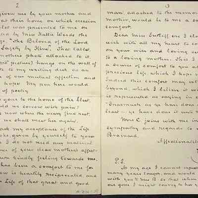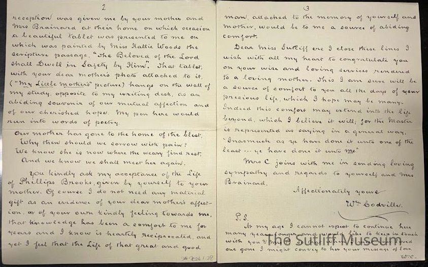 A letter from Reverend W. Codville to Phebe Temperance Sutliff thanking her for a letter about her mother and offering more condolences.Archive Details