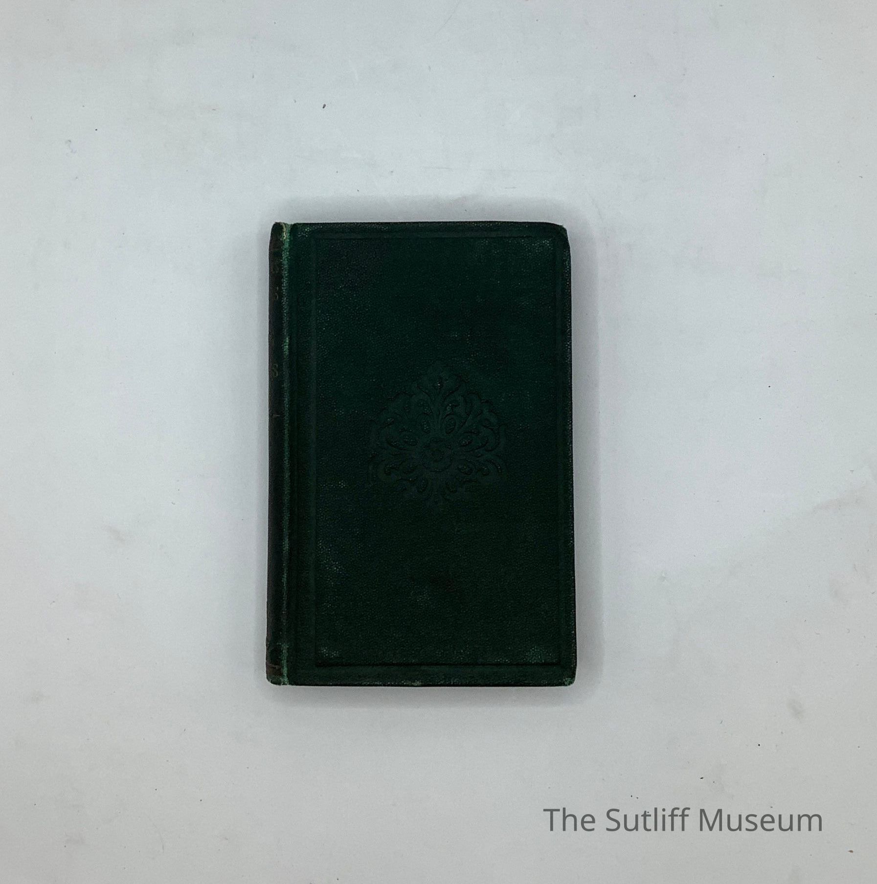 Small dark green leather with blind embossed design on front cover. Gold embossed title and publication information on spine. 4.24 inches high X 2.25 inches wide. 125 gold edged pages.Collection