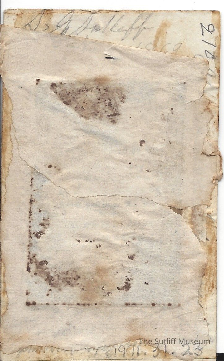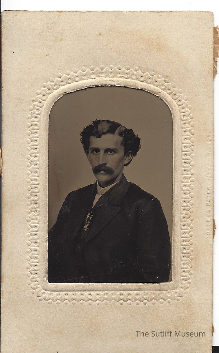 Tin Type photograph of Levi Granger Sutliff, dated 1869. There is writing on the underside of the tape holding the photograph in place, but is illegable.