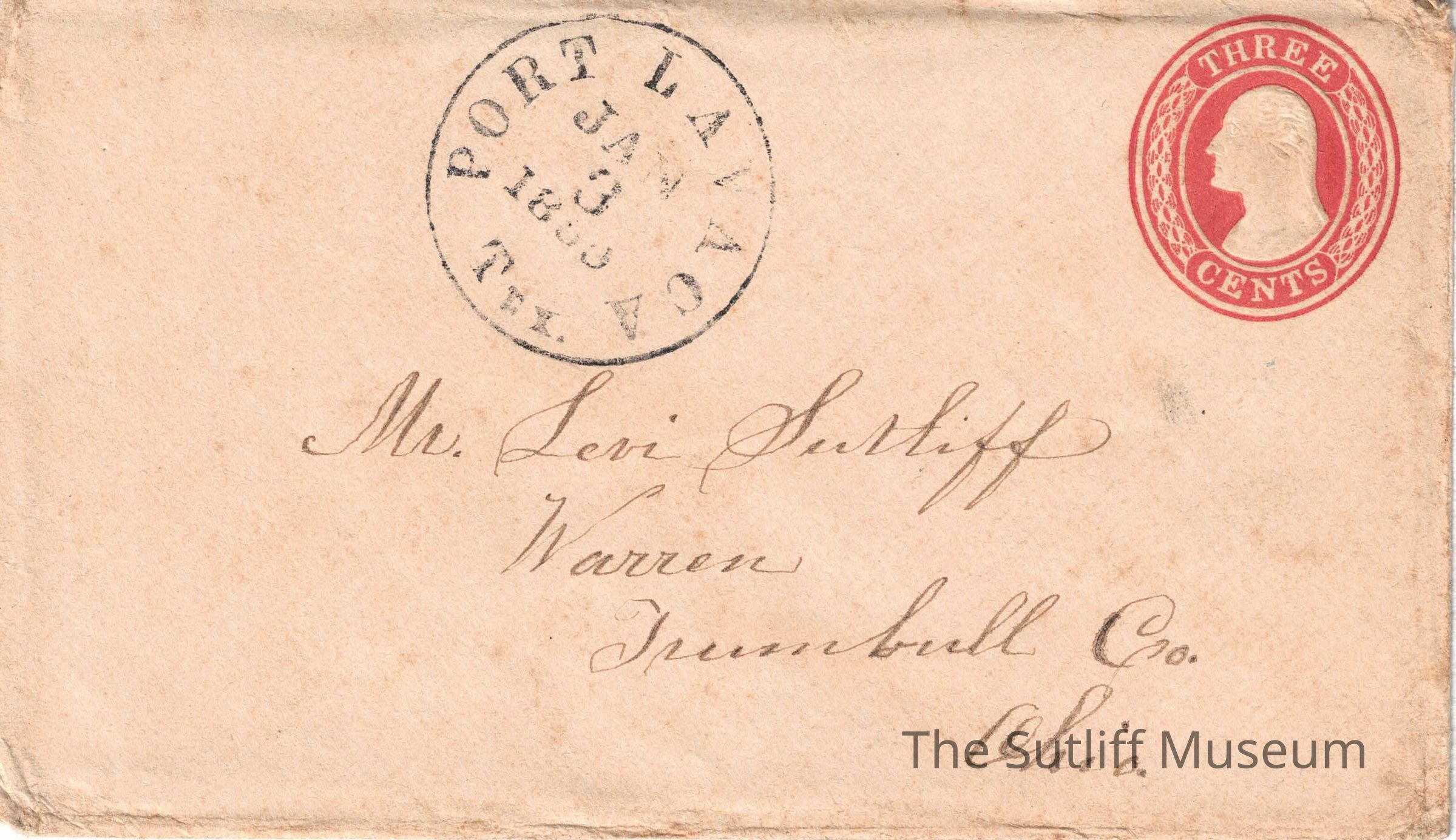 An envelope addressed to Levi Sutliff in Warren, Trumbull County Ohio. Dated Jan 3, 1853.Relationships