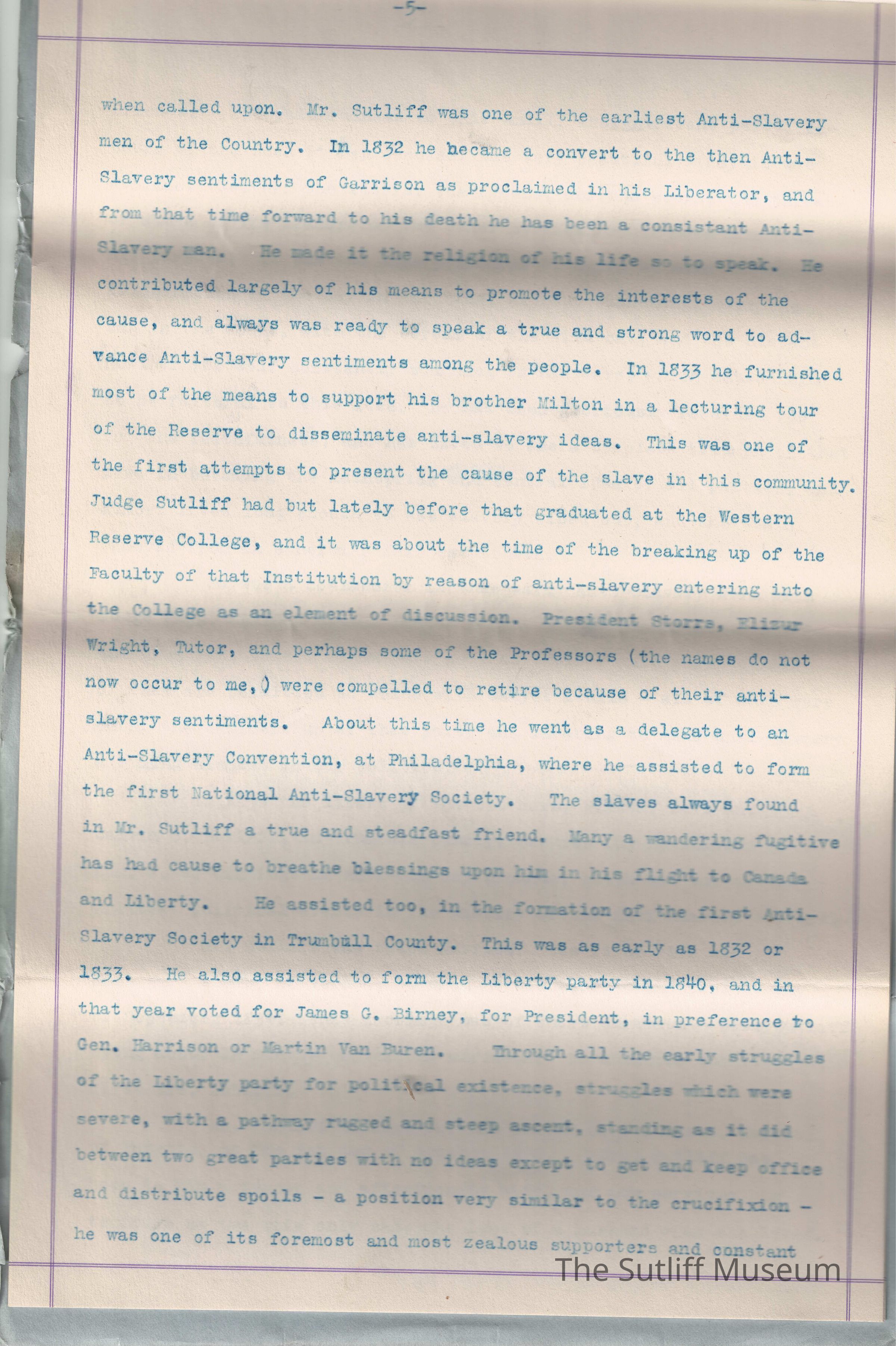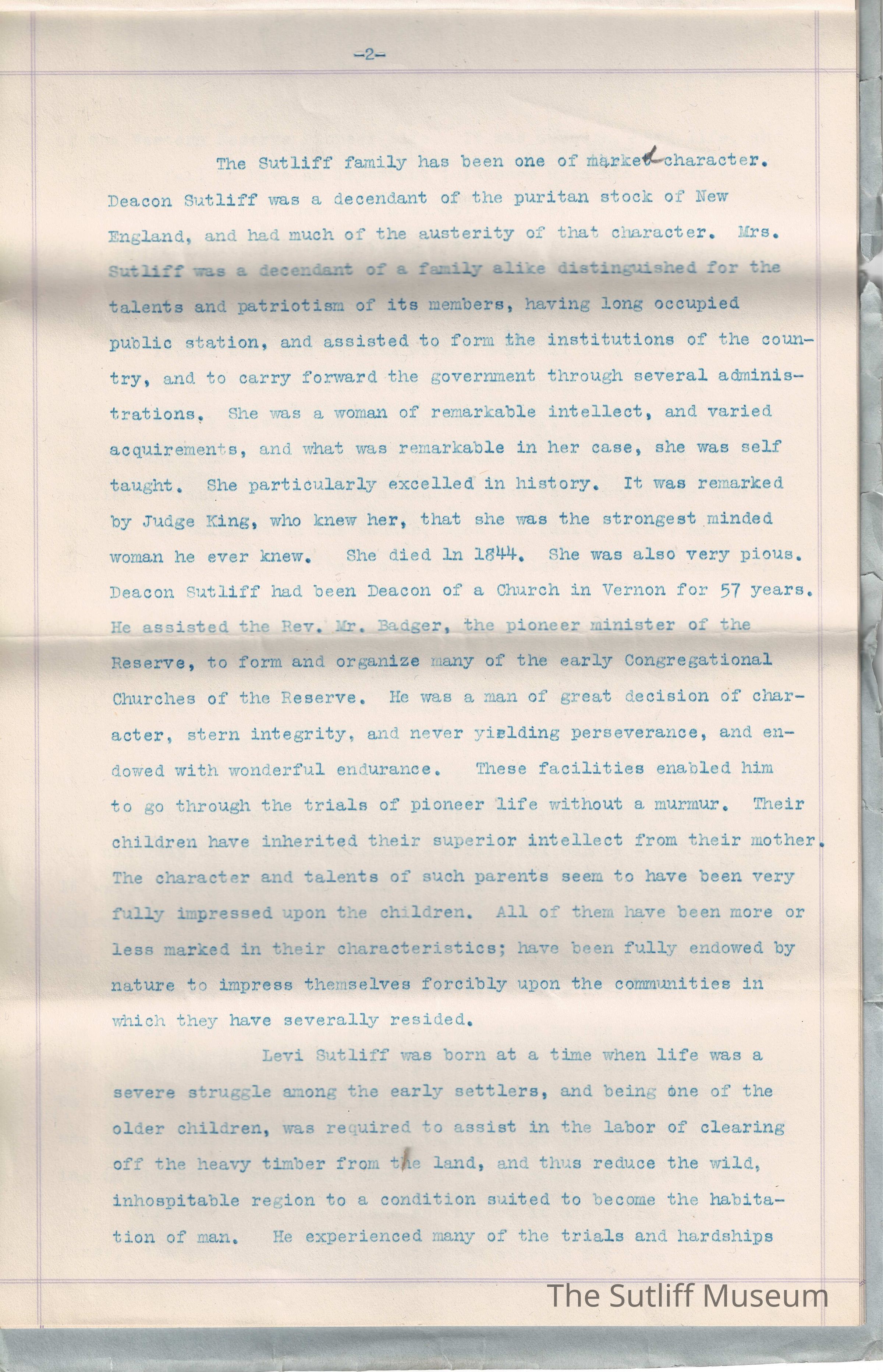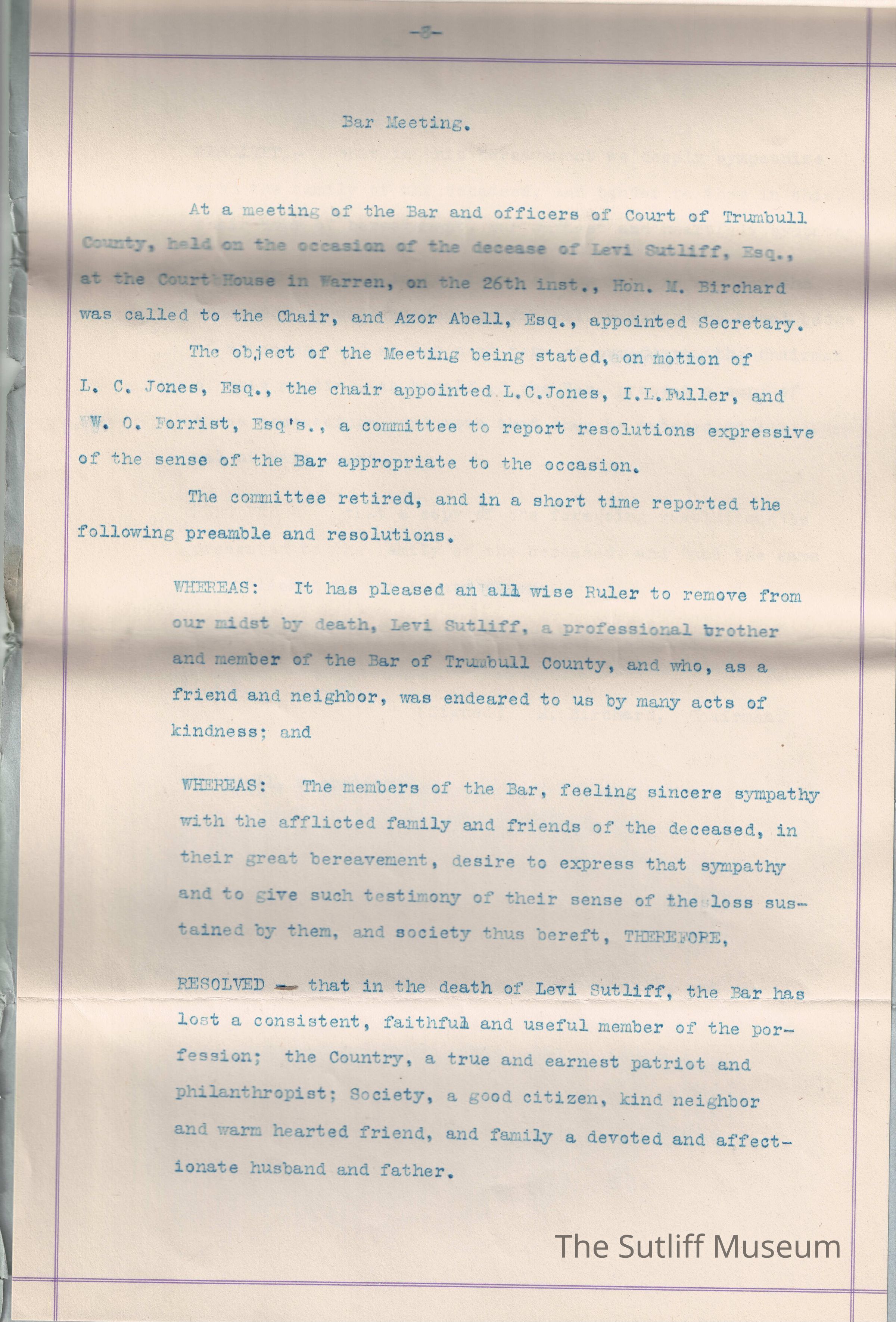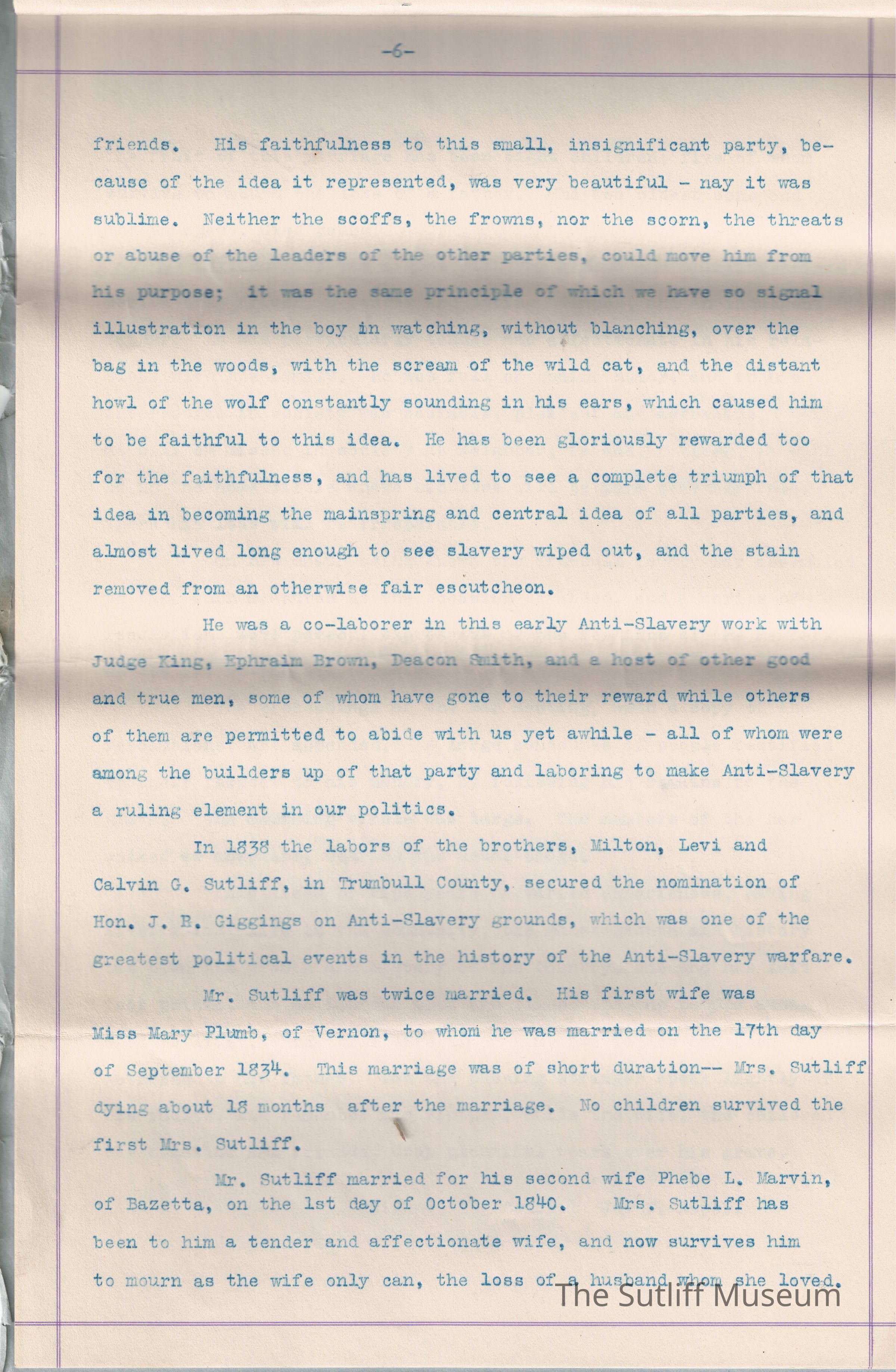 Sutliff, Levi, Sutliff, Samuel, Sutliff, Ruth Granger, Birchard, M.