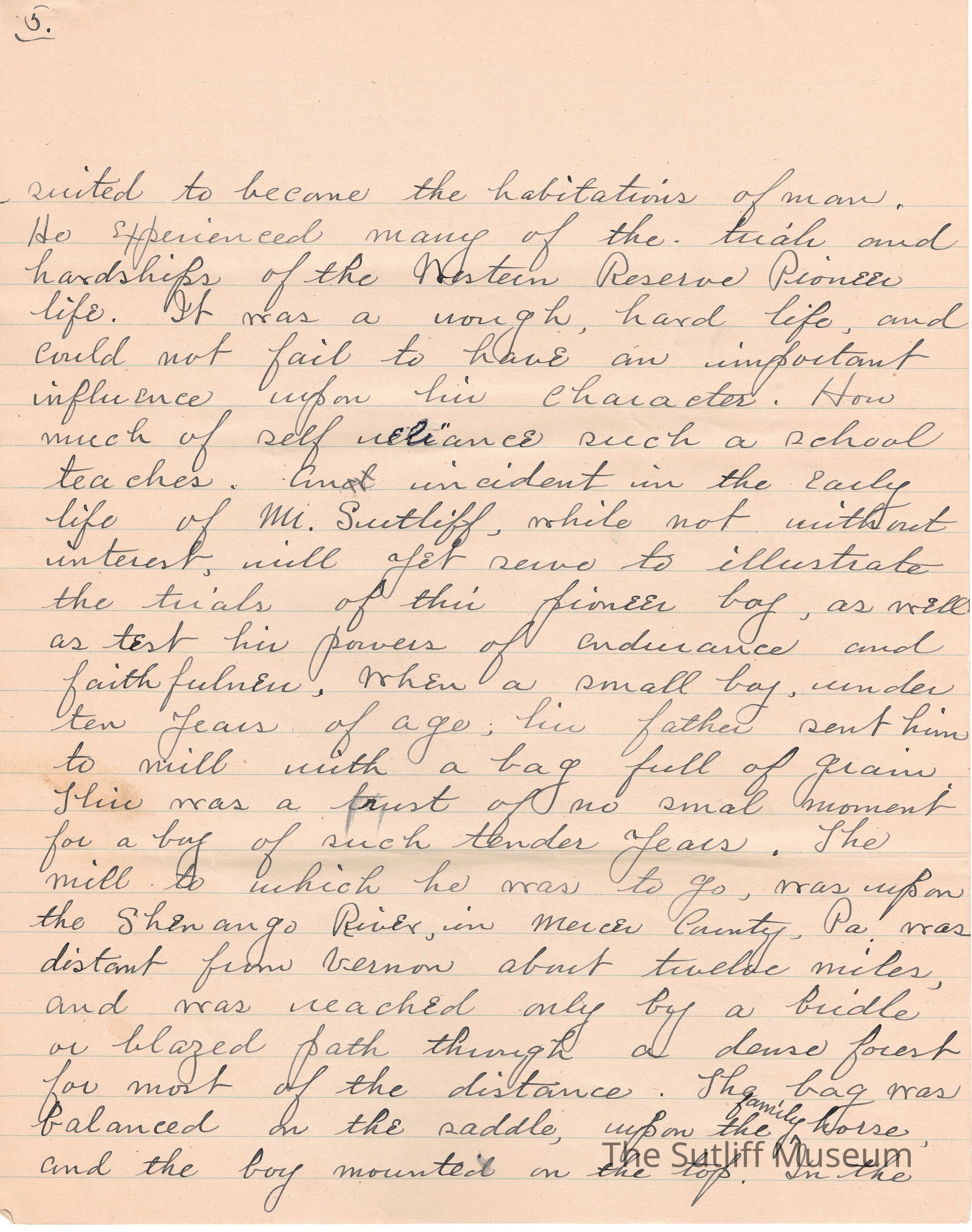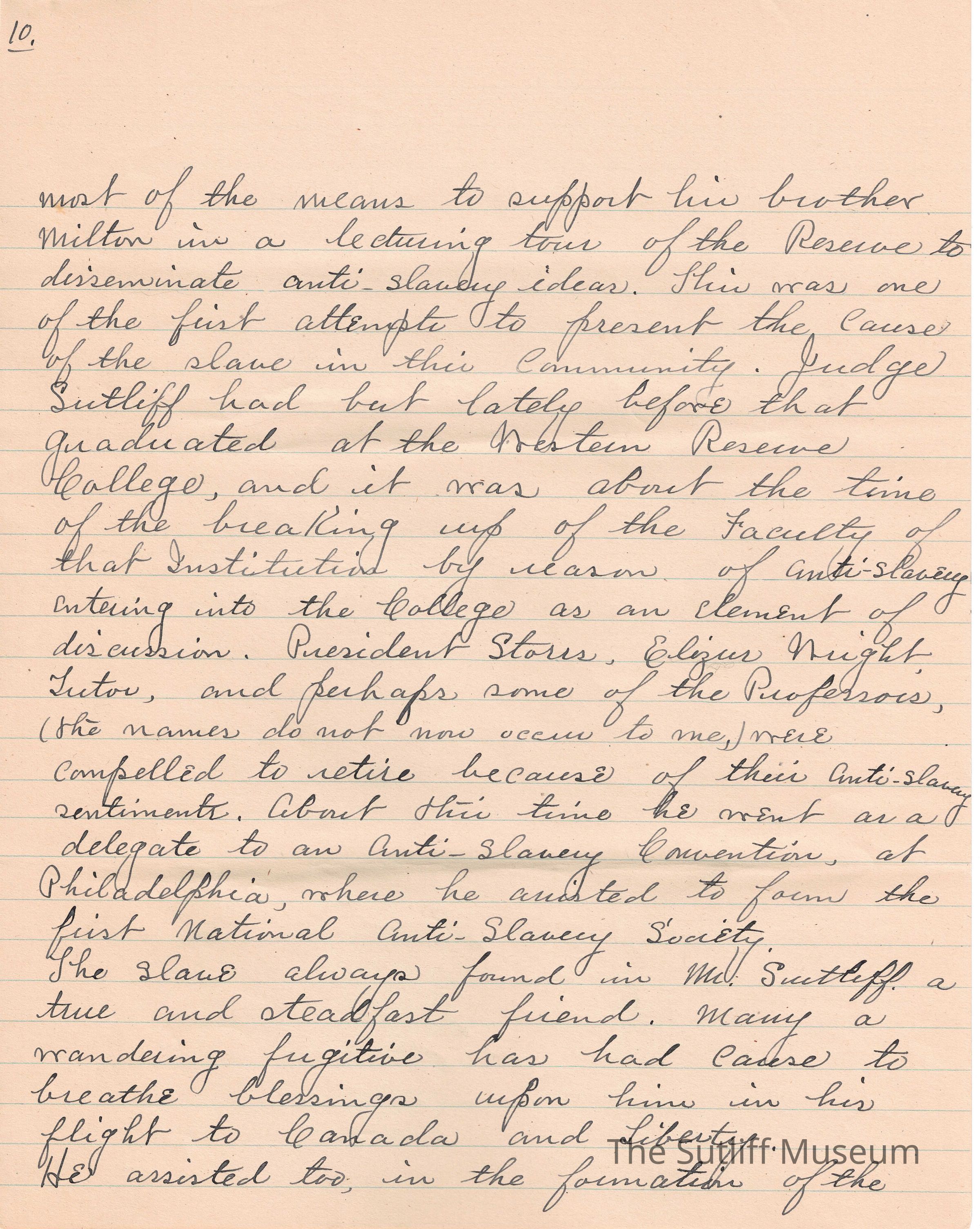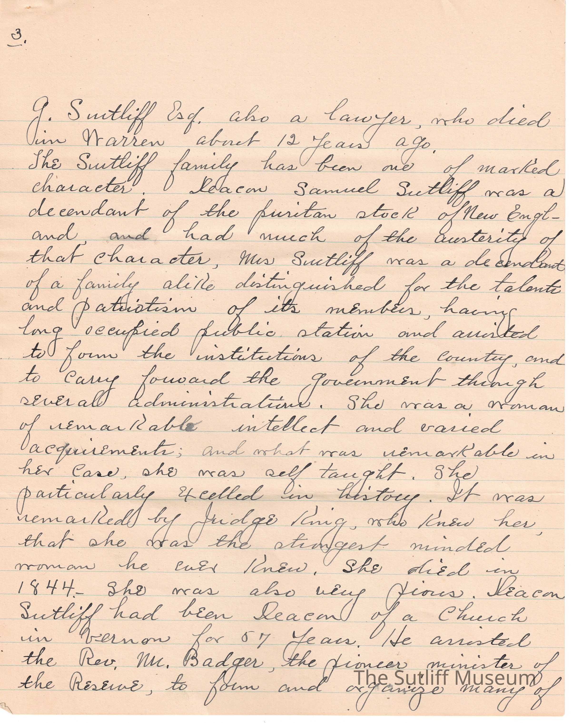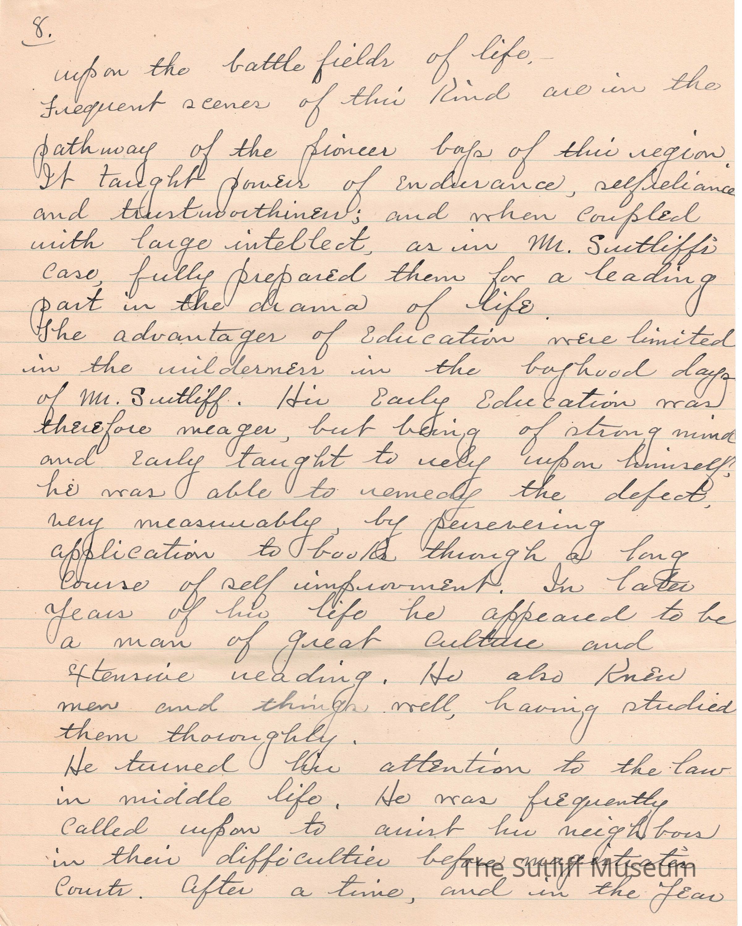 A handwritten copy of Levi Sutliff's obituary written by M. Birchard.