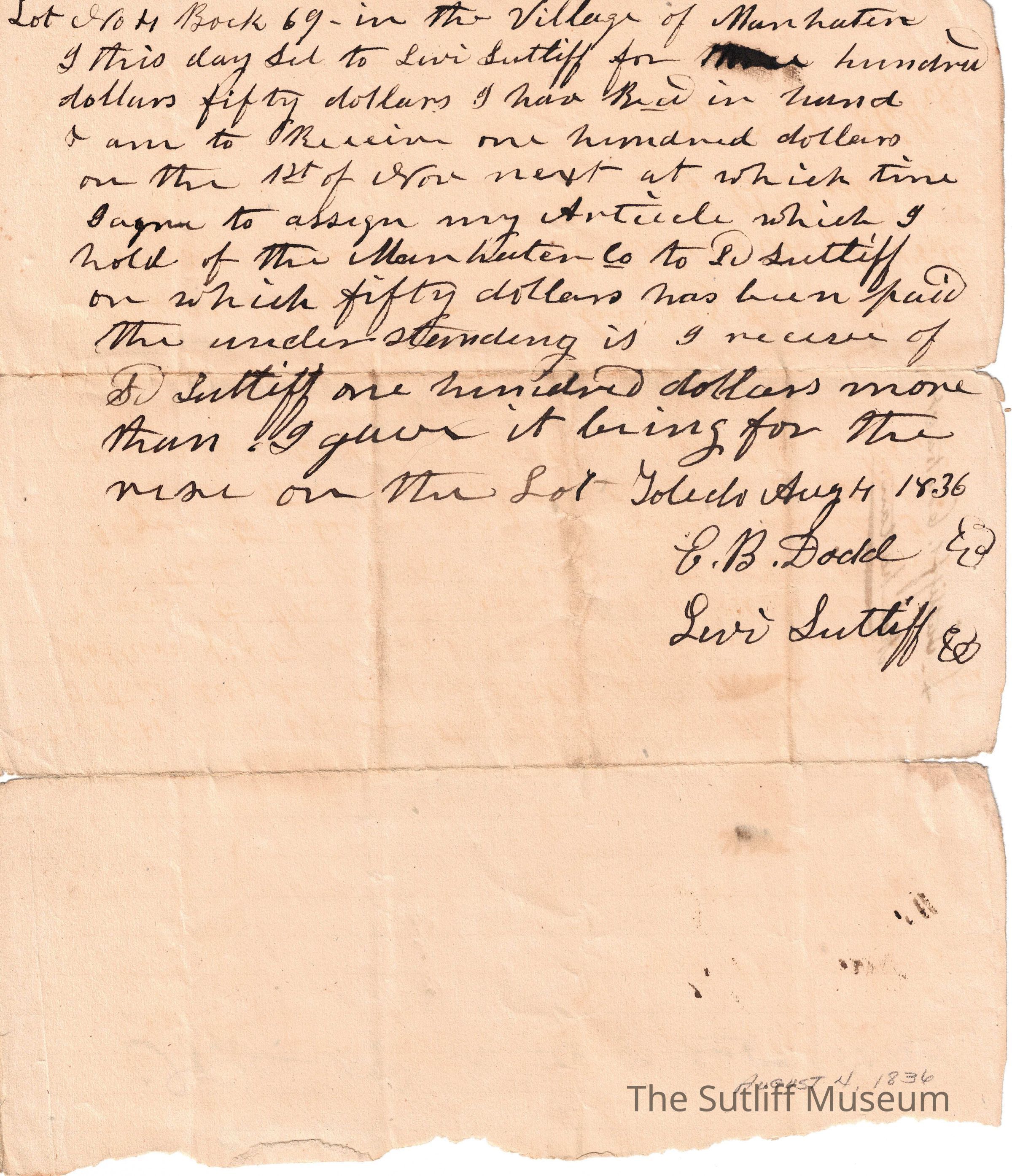 Artifacts, Cultural Activities, Domestic Life, Government & Politics, People, Social & Personal Activity, Toledo, Village of Manhatten, Business agreements, Business deals