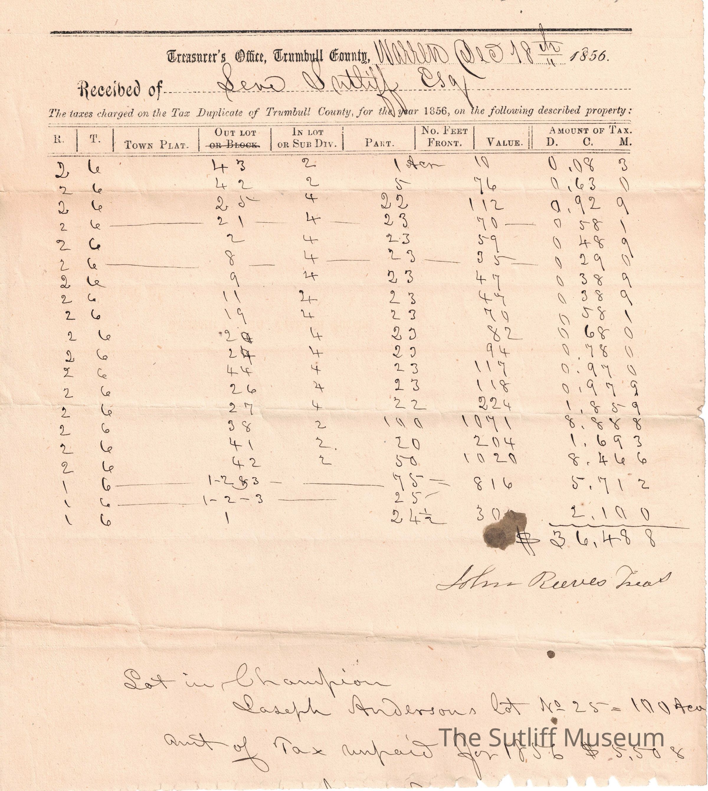 Levi Sutliff Taxes 1856Entry/Object ID