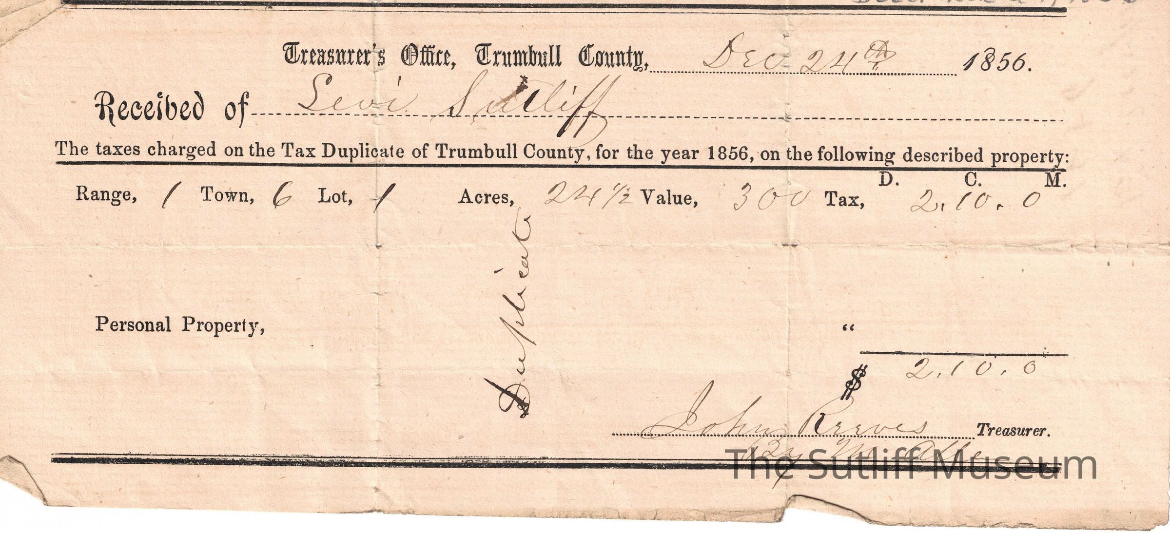 Levi Sutliff Taxes 1856 #3