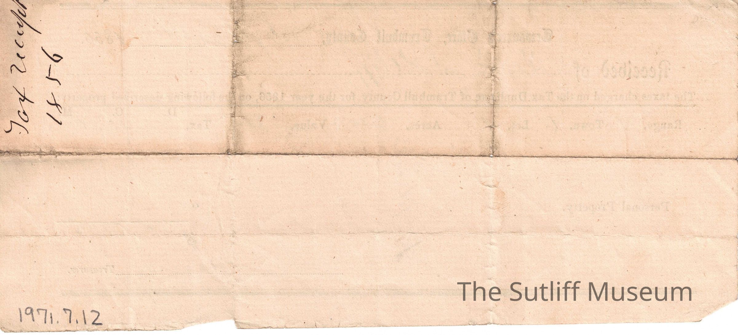 A small sheet listing Levi Sutliff's taxes for the 1856 year.