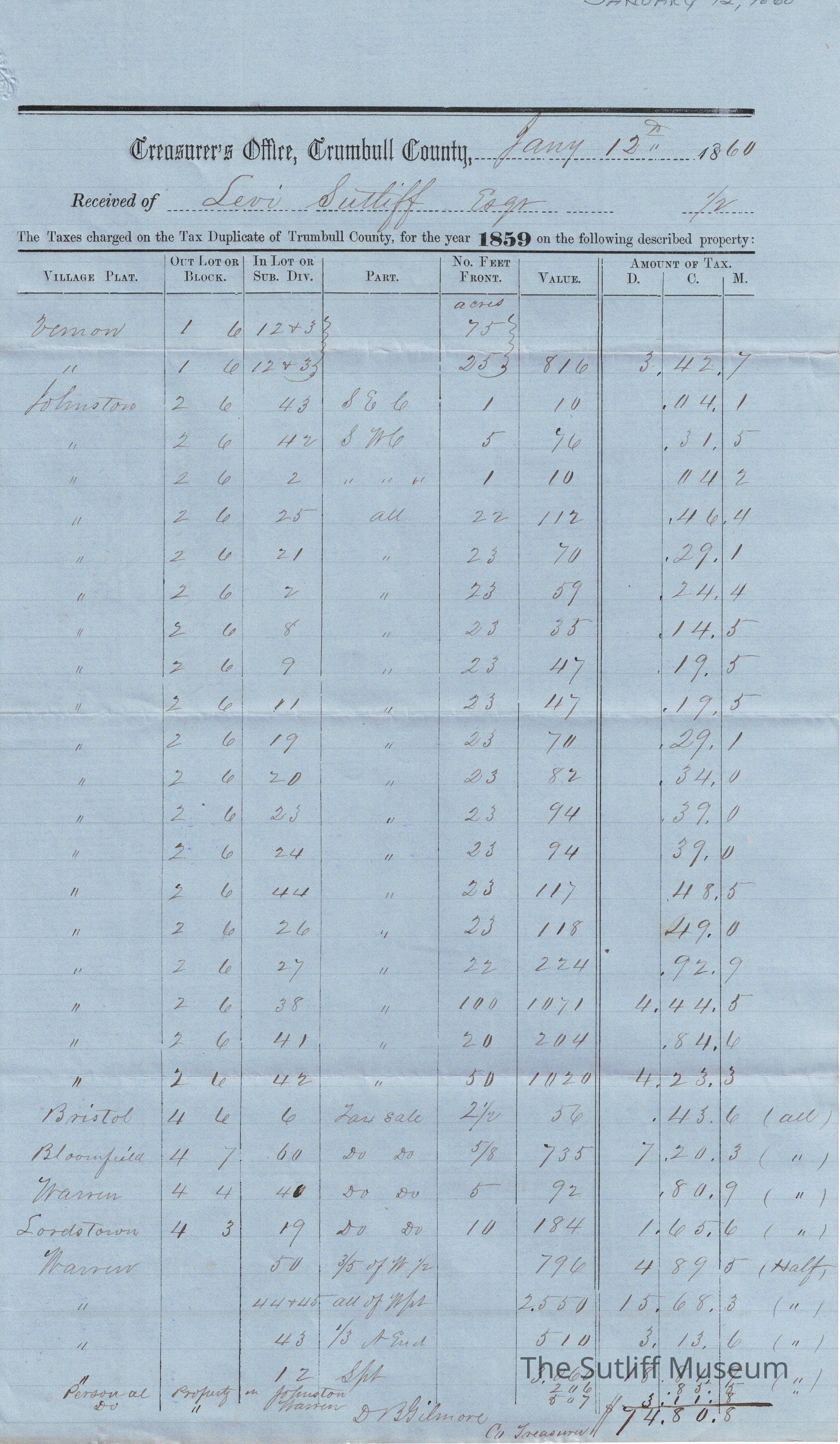 Levi Sutliff Taxes 1859Entry/Object ID