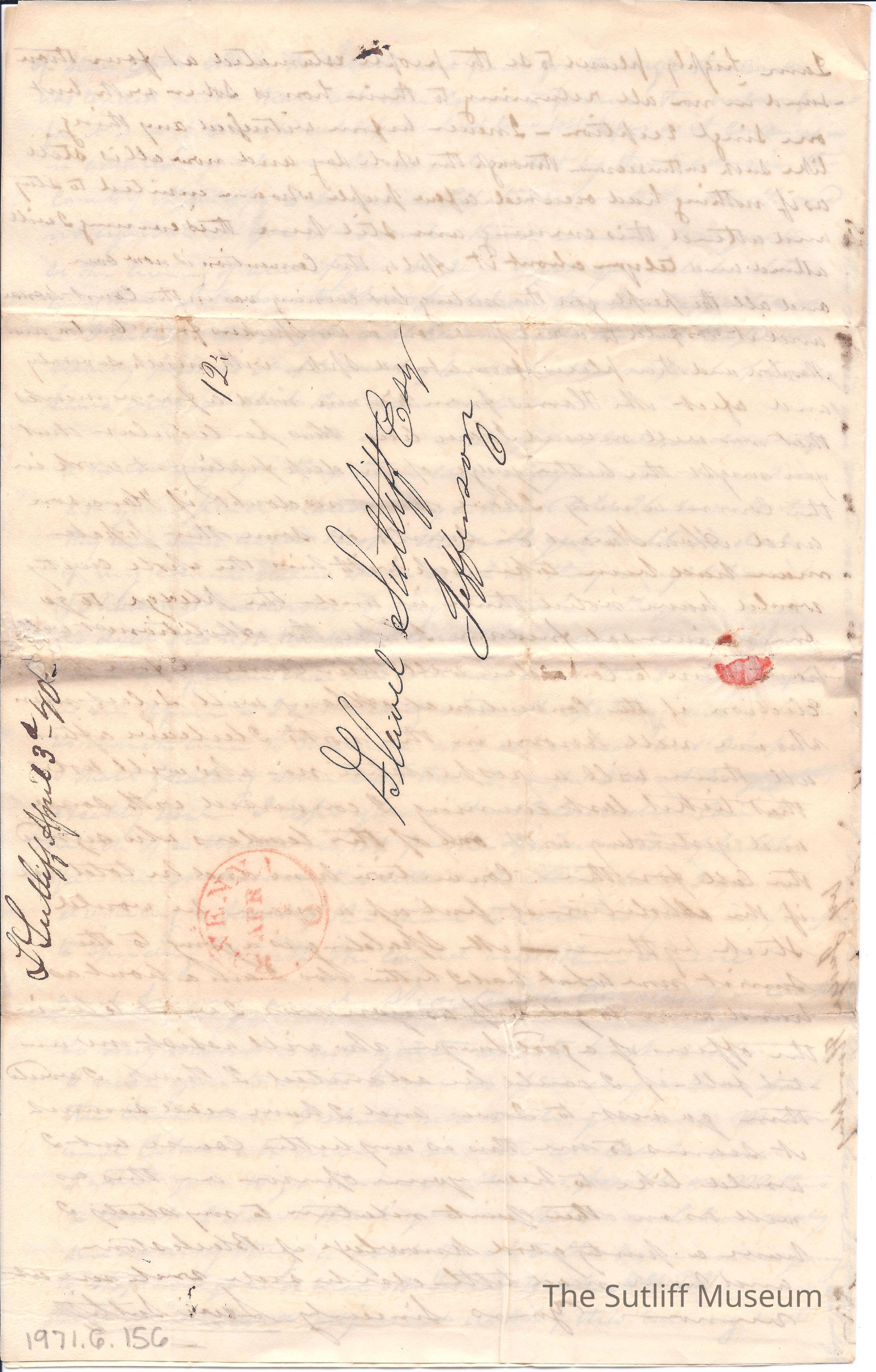 1840s, Illness, Correspondence Between Sutliffs, PoliticsDescription