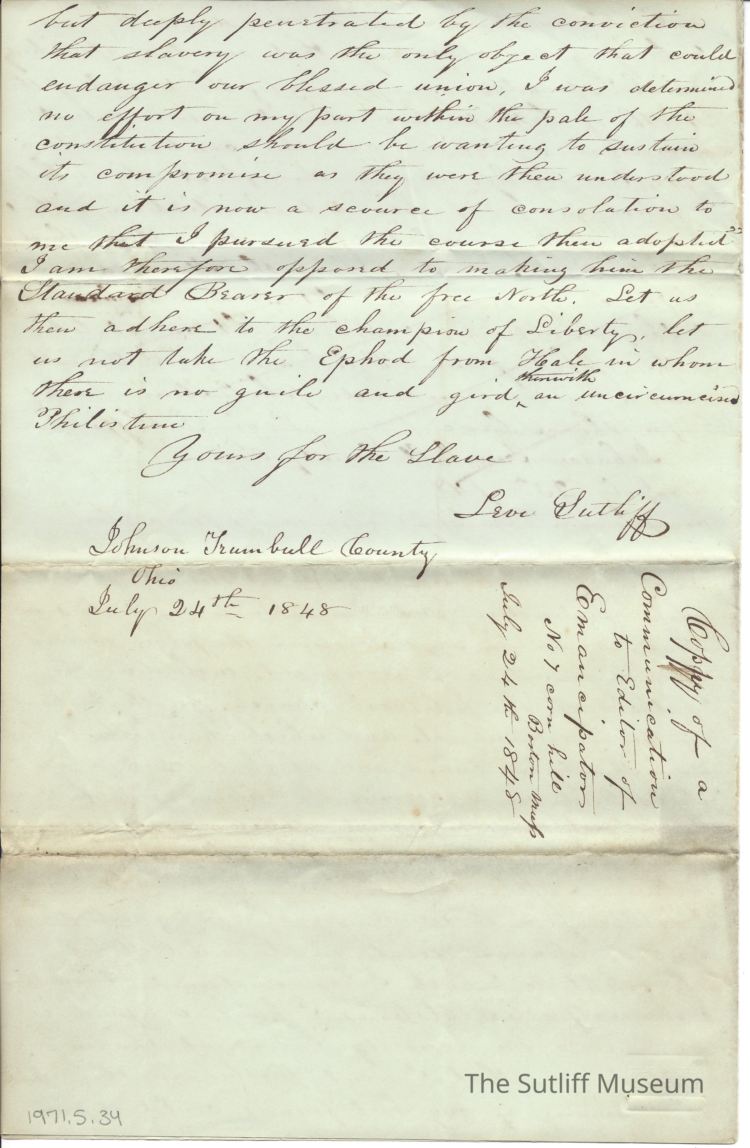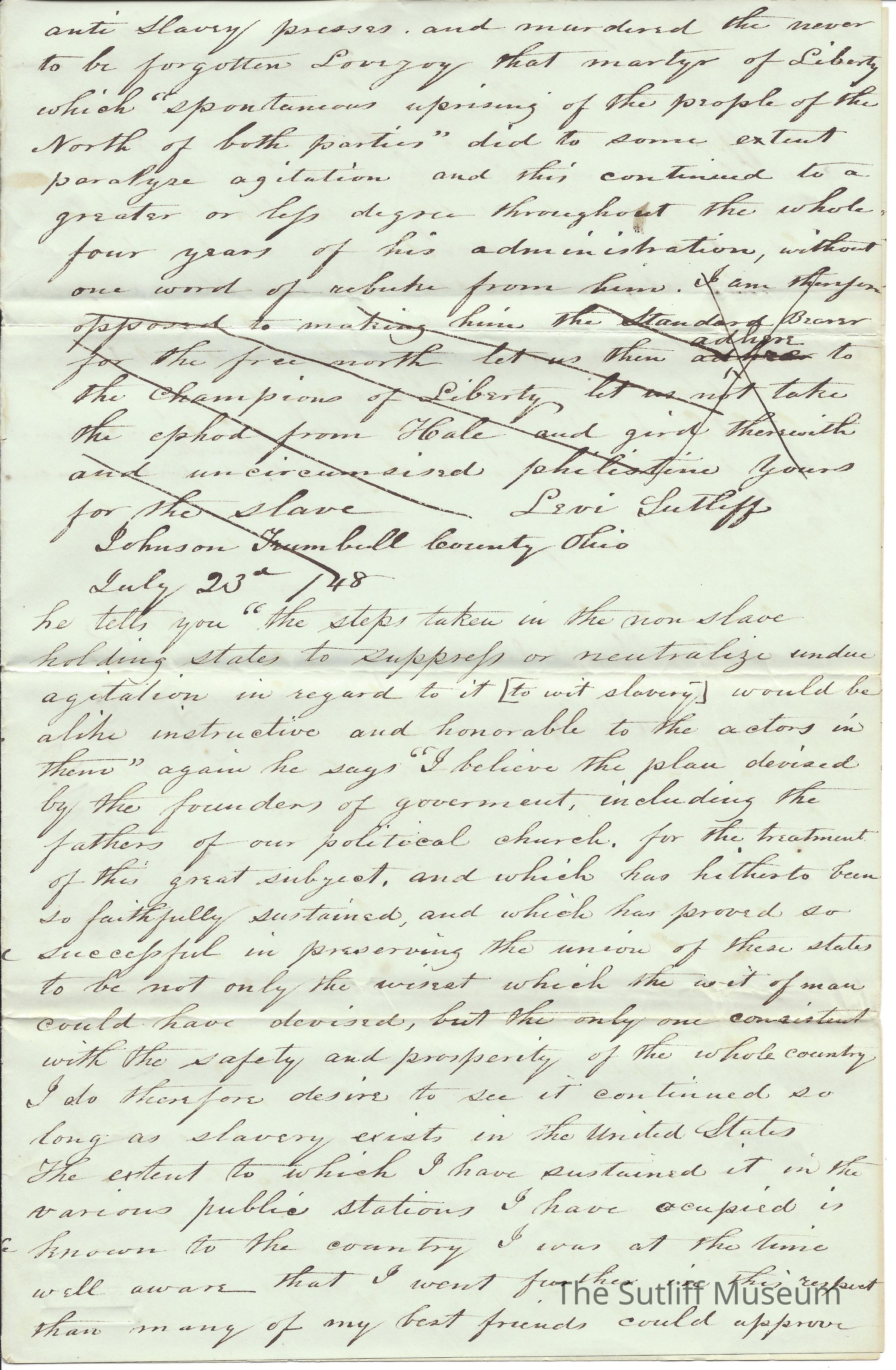 Levi Sutliff to the Editor of the EmancipatorEntry/Object ID