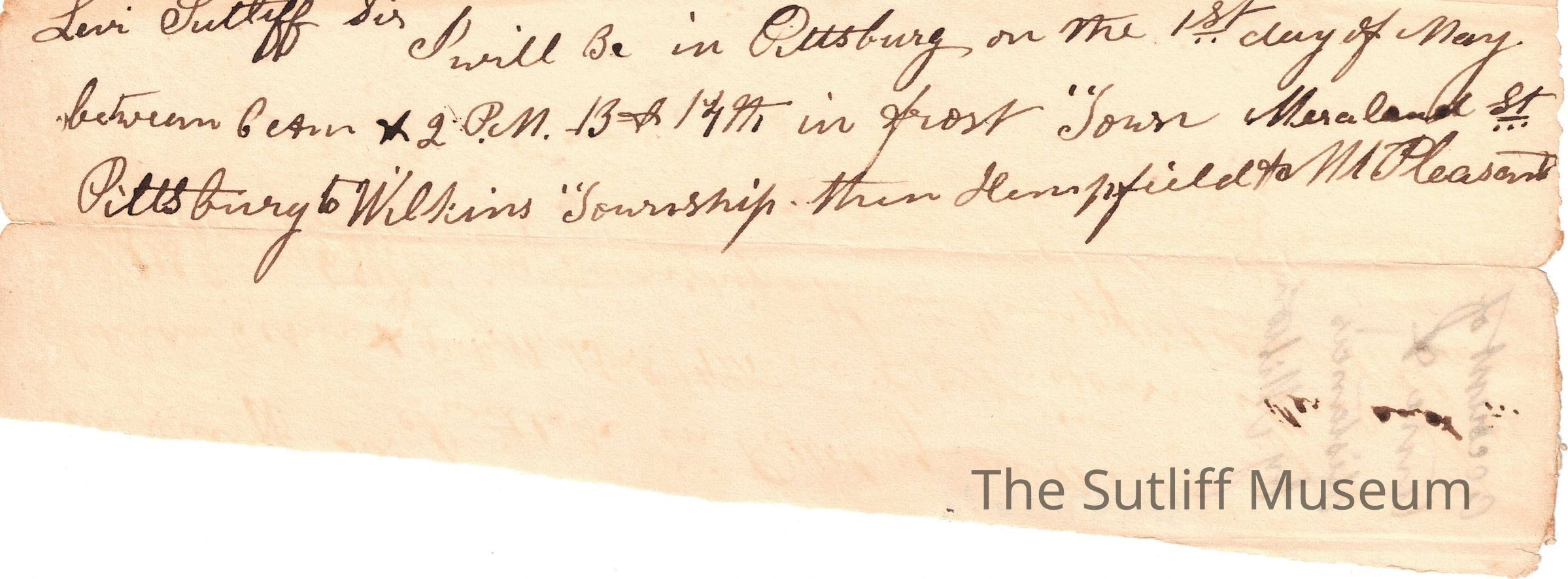 A note to Levi Sutliff from Milton Sutliff regarding his current location.Relationships