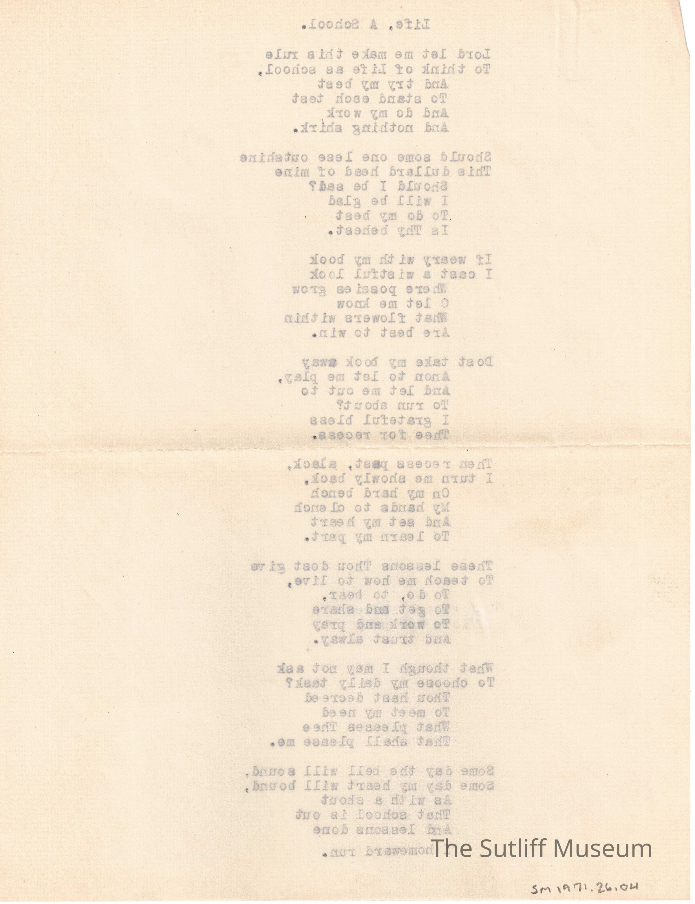 "Life, A School."Entry/Object ID