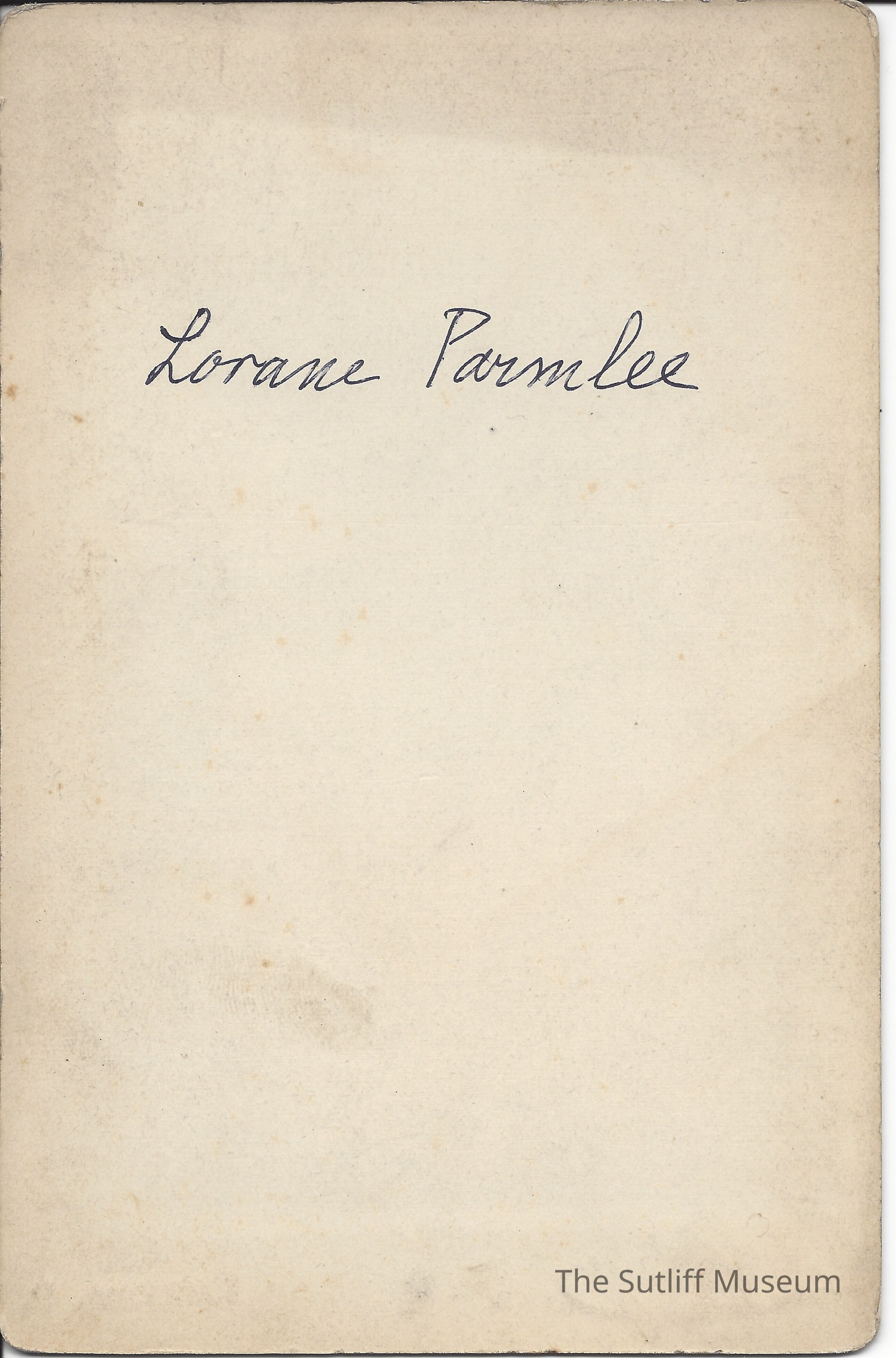 Photograph of Lorane Parmlee. "Lorane Parmlee" written in black ink on backCollection