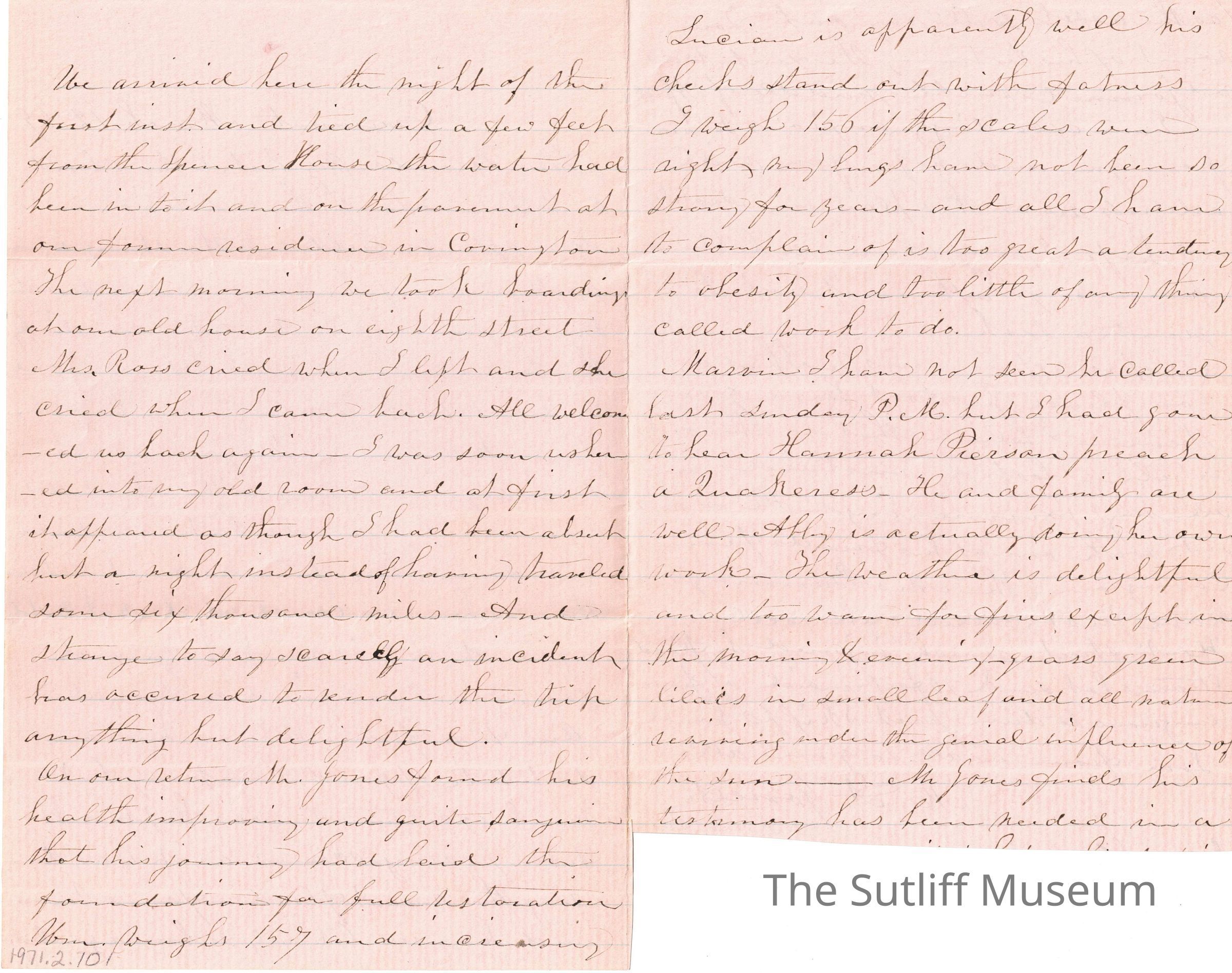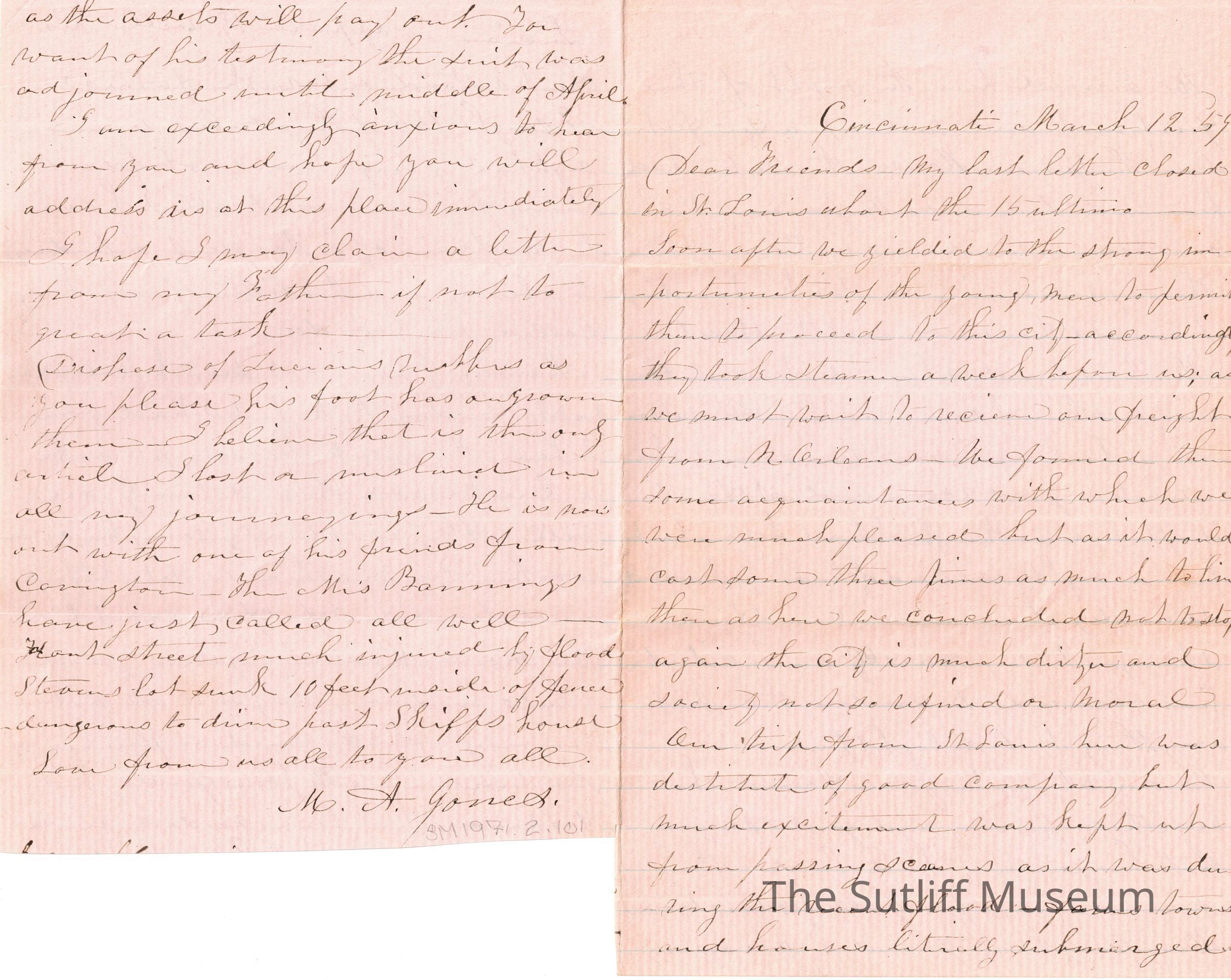 M. A Jones to Levi SutliffEntry/Object ID