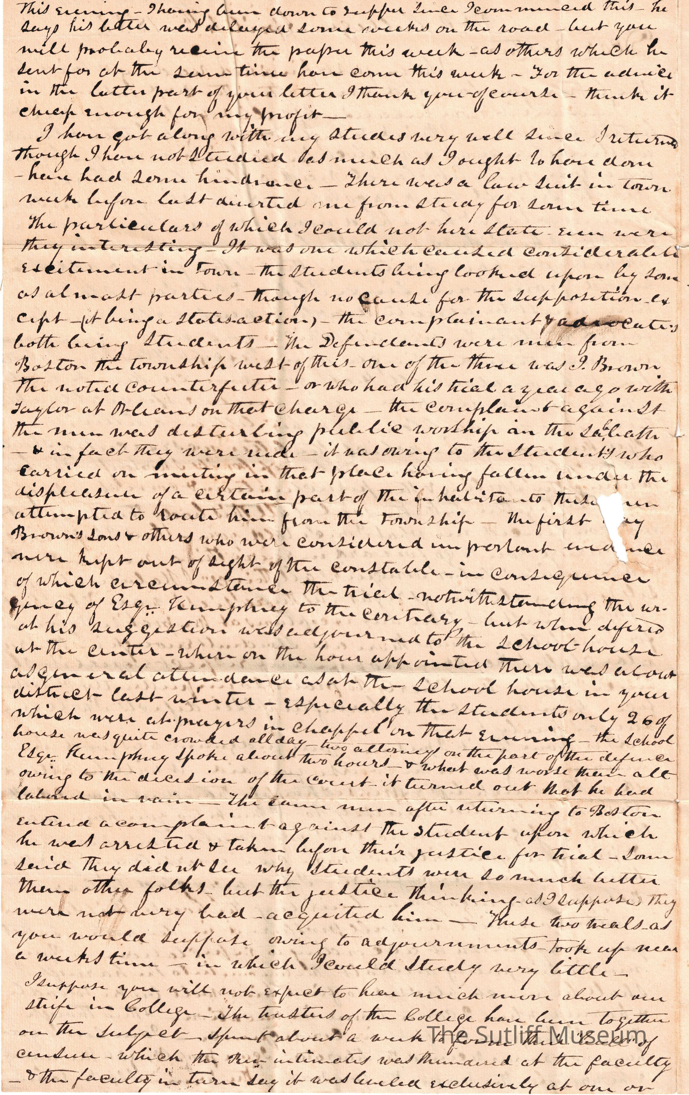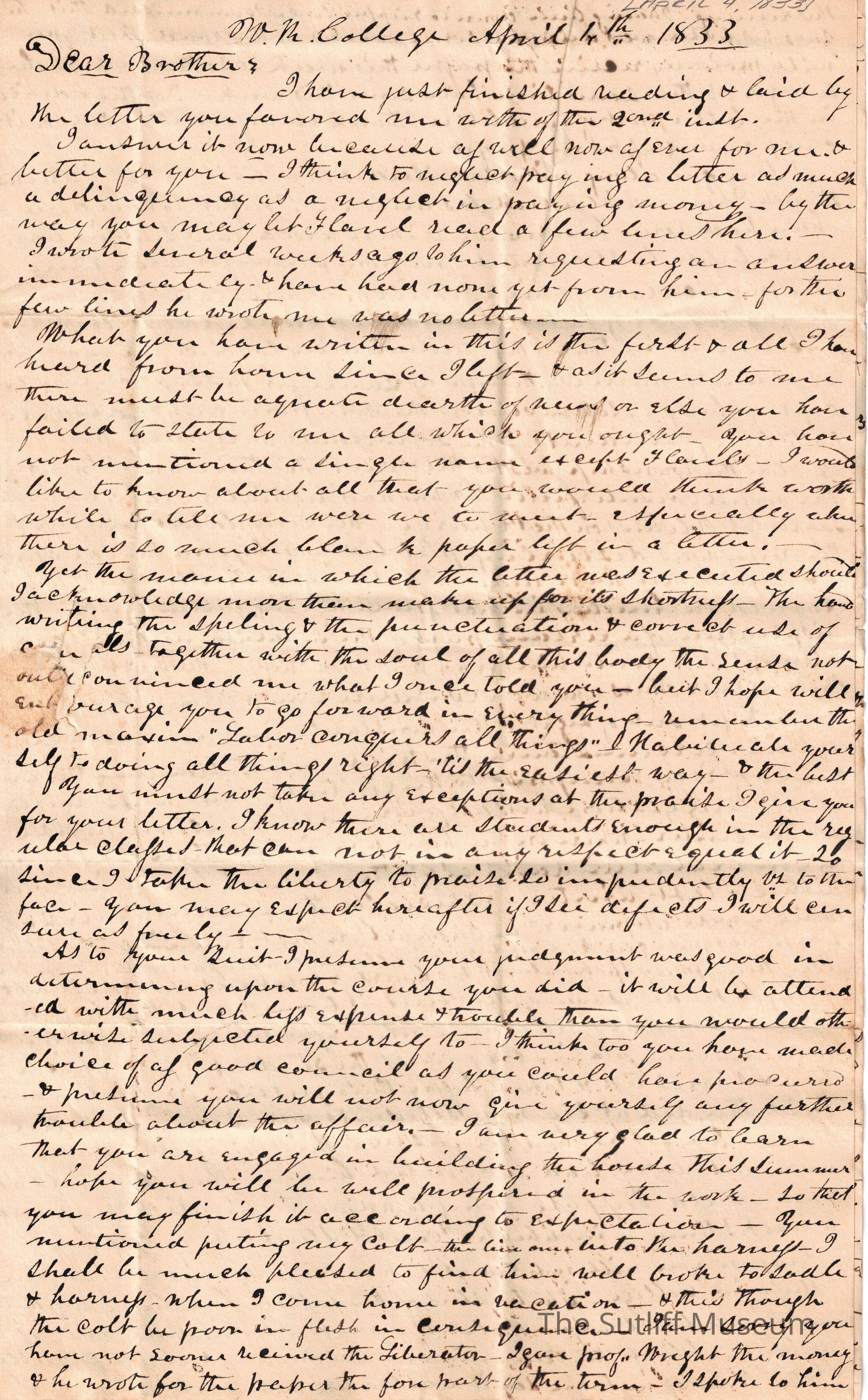 1830s, Correspondence Between Sutliffs, FamilyDescription