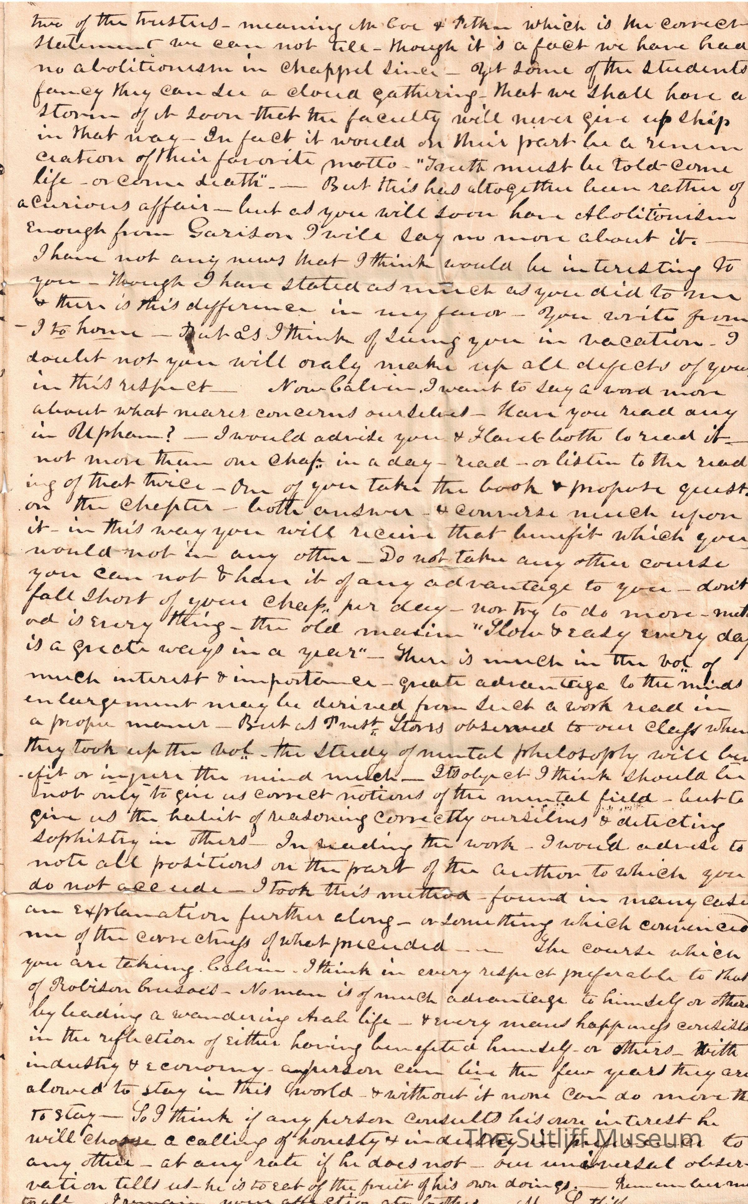 A letter from Milton Sutliff to Calvin Granger Sutliff regardingRelationships