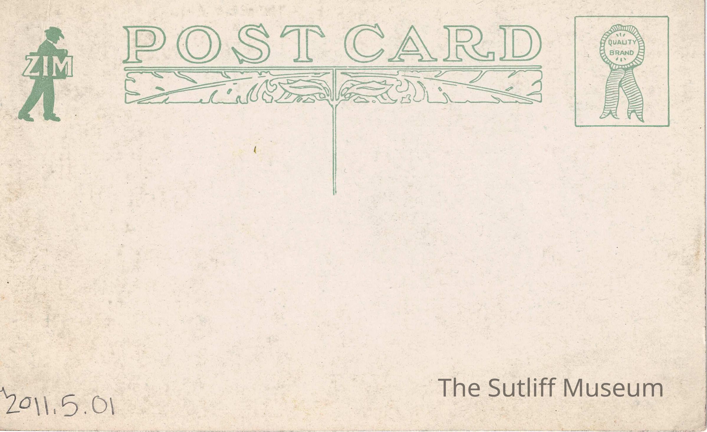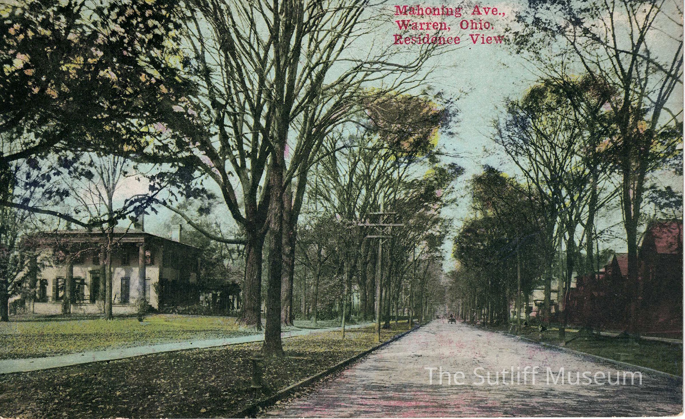 The front depicts a residential area on Mahoning Avenue in Warren. The back features an emble of a man with the letters ZIM, the word postcard, and a place to attach a stamp. The postcard is undated and not written on.Collection