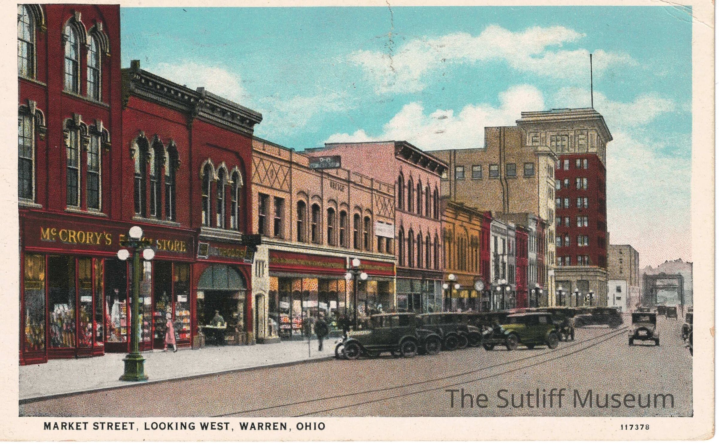 Architecture, Art, Artifacts, Automobiles, Buildings, Business & Commerce, Correspondence/Postcard, Cultural Activities, Domestic Life, People, Postal Services, Recreation, Social & Personal Activity, Transportation, Warren, Ohio, Market Street