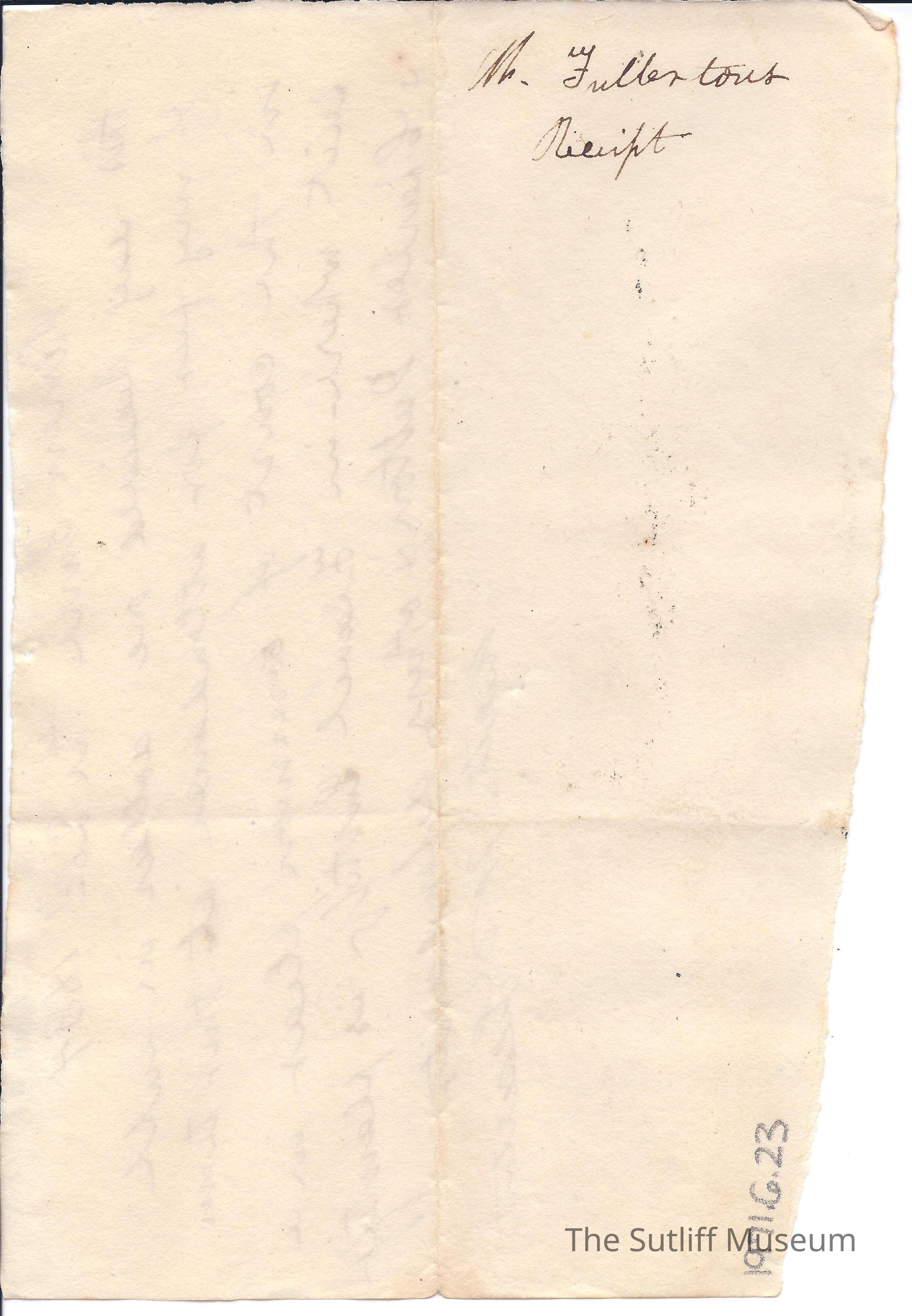 Letter from Martha W. Fullerton to Flavel Sutliff as a receipt for payment for services rendered in Court of Common Pleas. Most likely sent with 1971.6.22 and 1971.6.24.