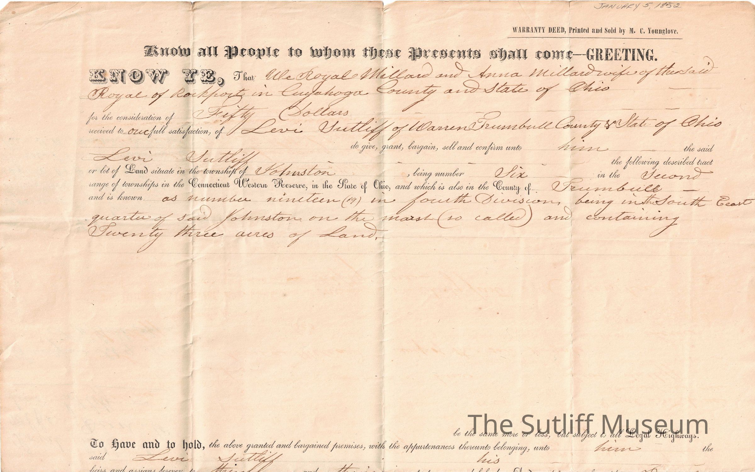 Land transfer between Royal and Anna Millard and Levi Sutliff.Relationships
