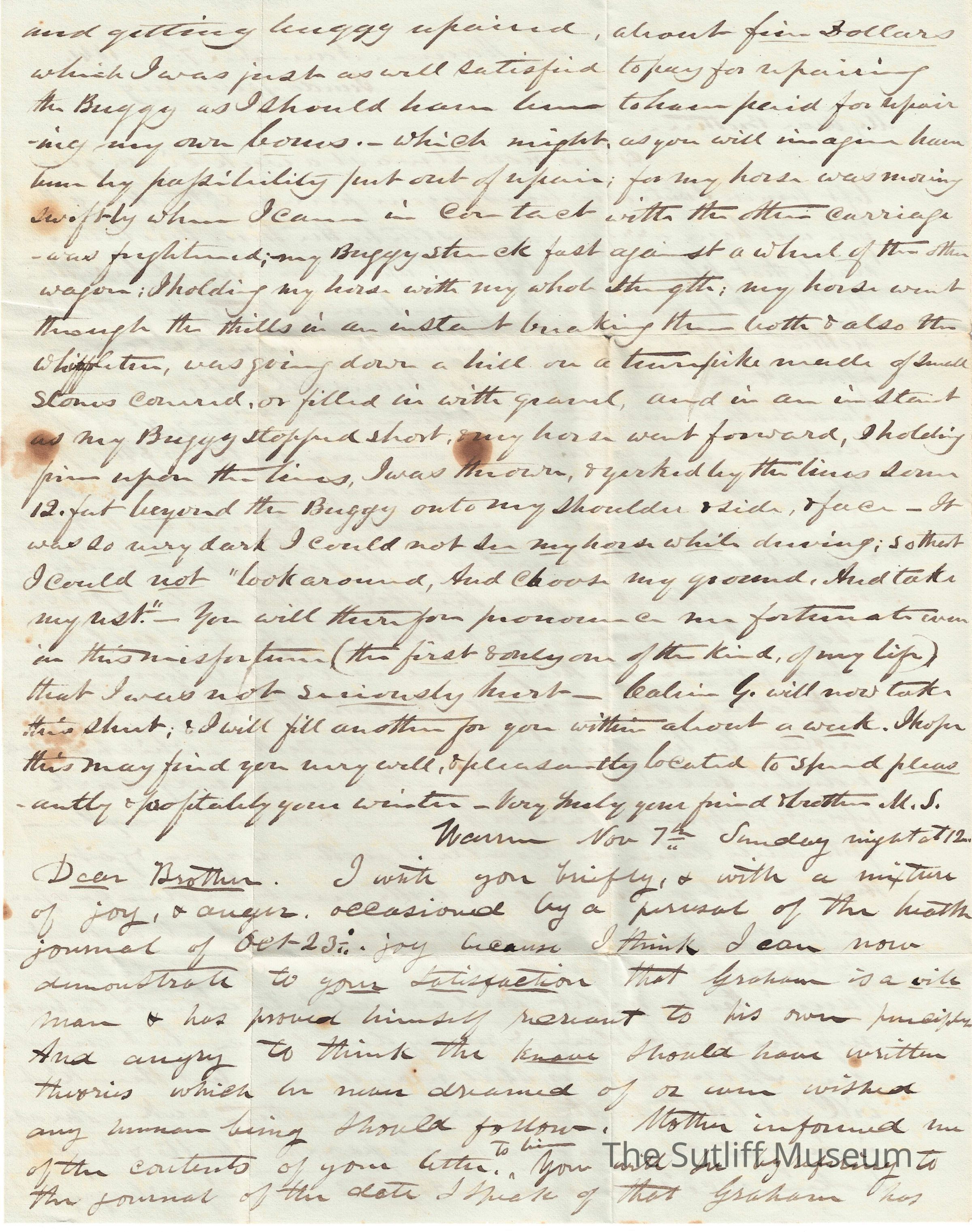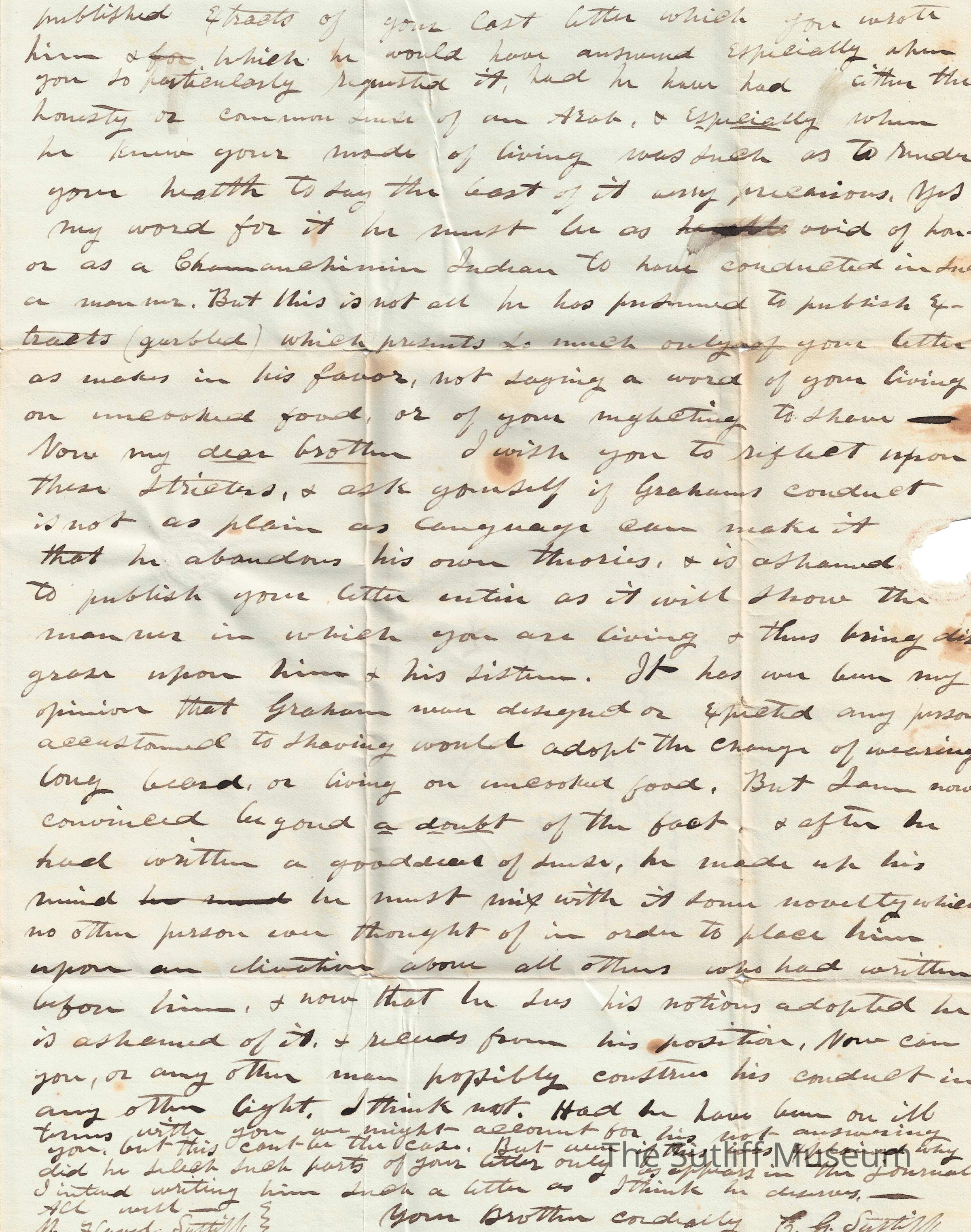 Letter #2 from Calvin Granger Sutliff to Flavel Sutliff regarding Flavel's dislike for Graham, and Calvin's defense for Graham.Collection
