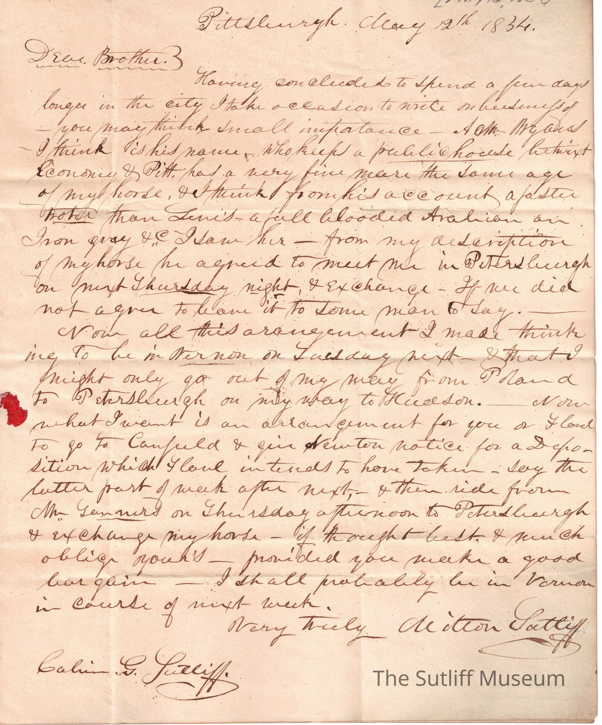 Milton Sutliff to Calvin Granger SutliffEntry/Object ID