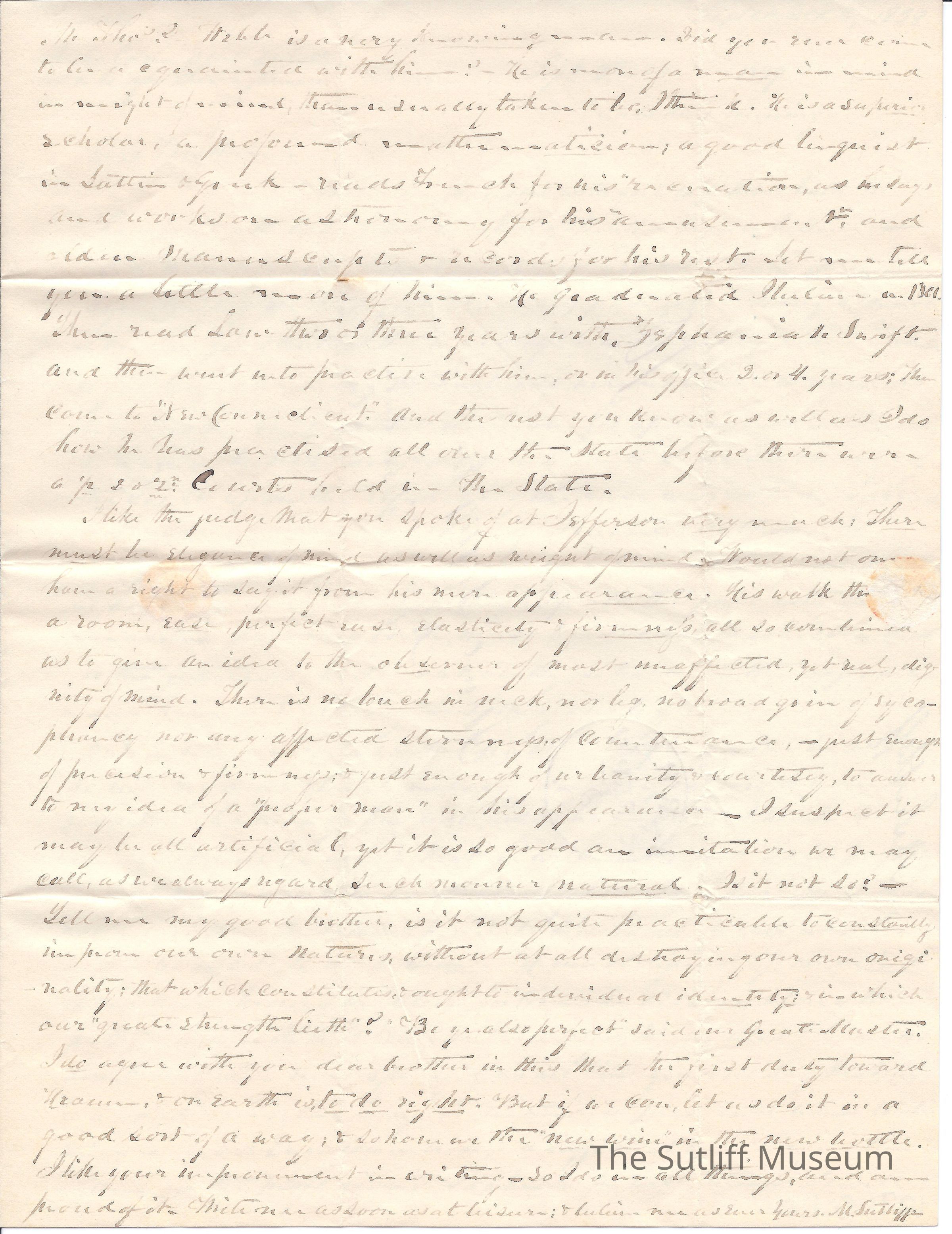 Letter from Milton Sutliff to Flavel Sutliff regarding a suit the family lost. He also advises Flavel to end his dalliance with land speculation.Collection