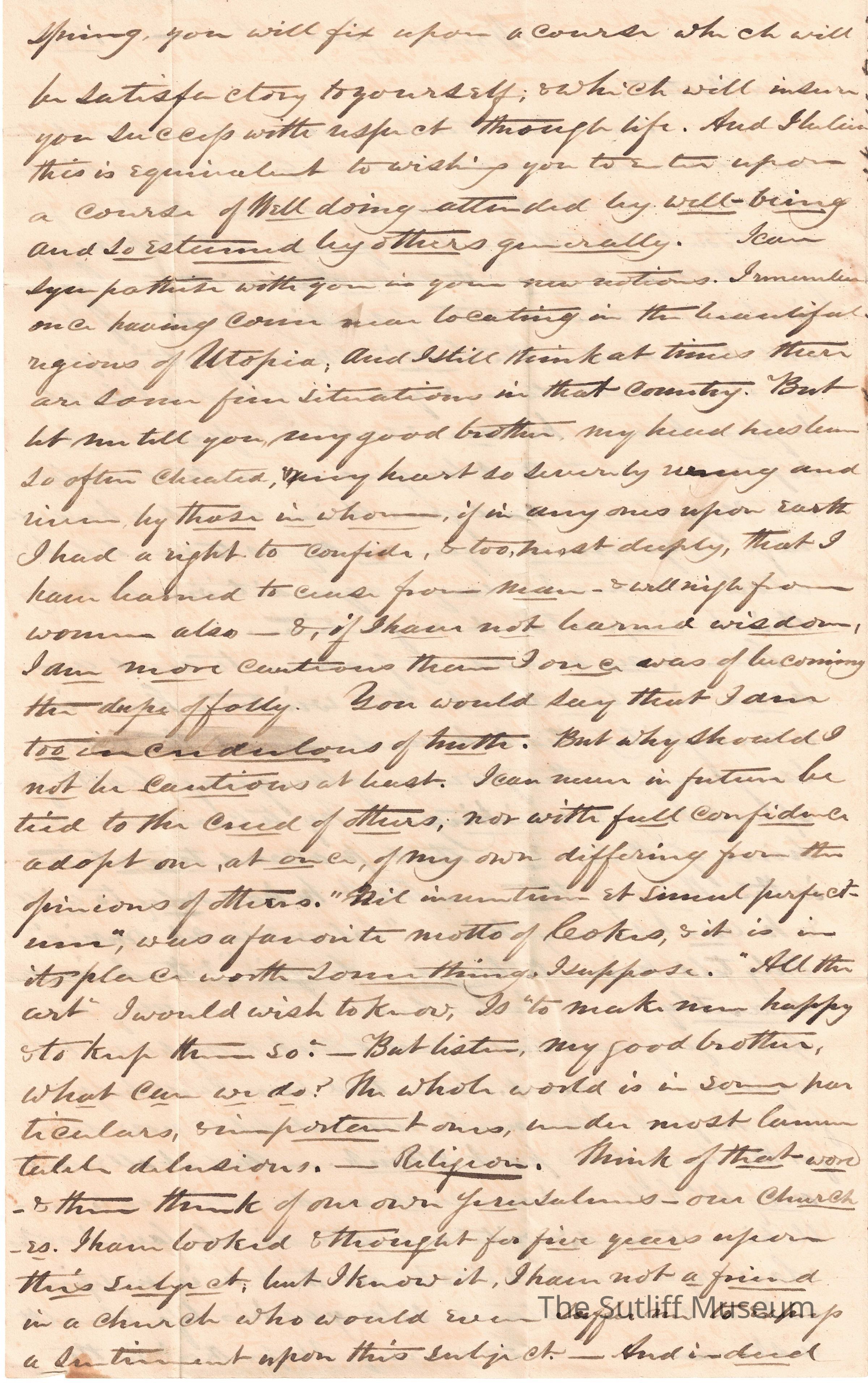 1840s, Correspondence Between Sutliffs, School, Religion, LegalDescription